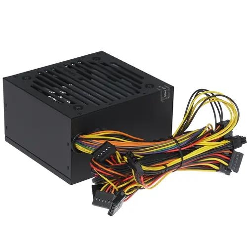 Блок питания Aerocool VX PLUS 700W RGB [VX-700 PLUS RGB] предназначен для систем начального уровня. Модель оснащена силовым кабелем на 50 см и кабелем для процессора на 55 см, что подходит для ATX-корпусов, а также корпусов с нижним расположением БП. Отличительной особенностью блока является настраиваемая RGB-подсветка, что позволит украсить вашу сборку и придать ей индивидуальности. Устройство выполнено в стальном корпусе и благодаря качественным компонентам отличается высокой надежностью и стабильностью работы. Блок питания Aerocool VX PLUS 700W оборудован цепью на 12 В, с помощью которой вы легко сможете запитывать производительные видеокарты и процессоры. Устройство поддерживает стандарт ATX12V версии 2.3, а также EPS12V. Максимальная мощность — 700 Вт и 648 Вт по линии 12 В. Сила тока в этом случае составляет 12V1 54A. Охлаждение блока осуществляется бесшумным вентилятором на 120 мм с “умной” системой регулировки оборотов. Безопасность использования обеспечивается защитой от короткого замыкания, а также от перегрузки по напряжению и мощности. Для основного подключения блока питания используется кабель 24 pin. Питание процессора осуществляется при помощи одного коннектора 4+4 pin и двух 6+2 pin для видеокарты. Для подключения дисков SATA доступно шесть кабелей 15 pin.