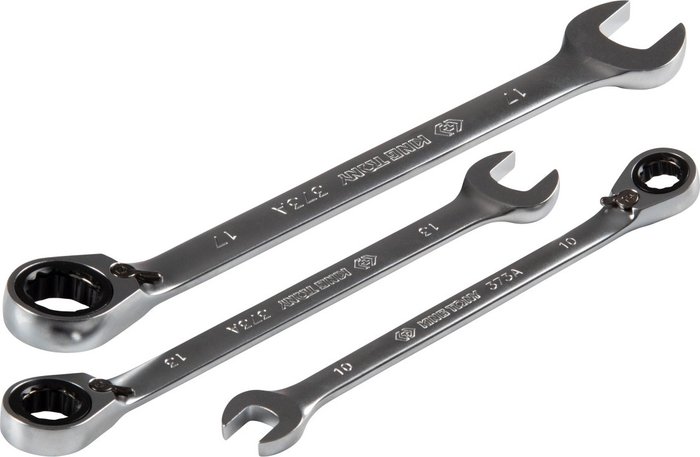 • Комплектация Ключи трещоточные комбинированные с флажковым переключателем (373A) – 10, 12, 13, 14, 17, 19 мм; Пластиковый держатель ключей