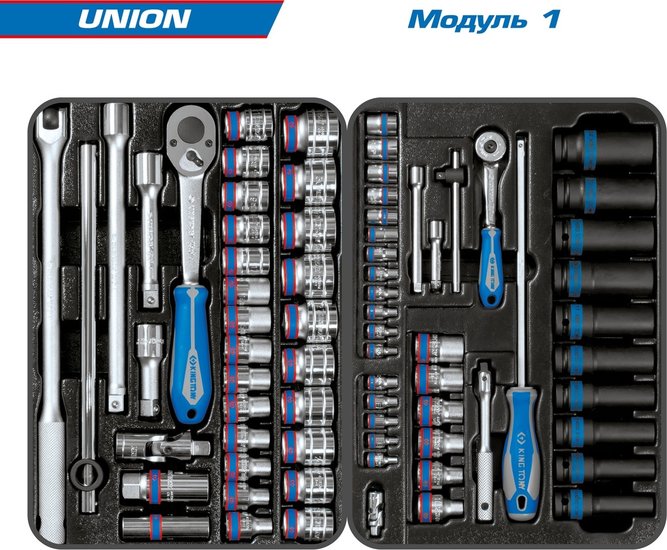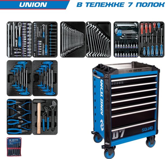 • Комплектация Набор включает 173 предмета, включая торцевые головки, ключи, отвертки, пассатижи и другие инструменты.