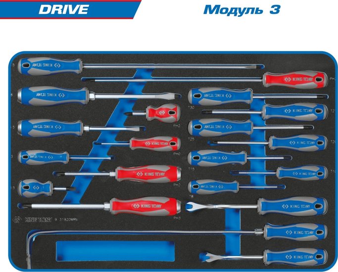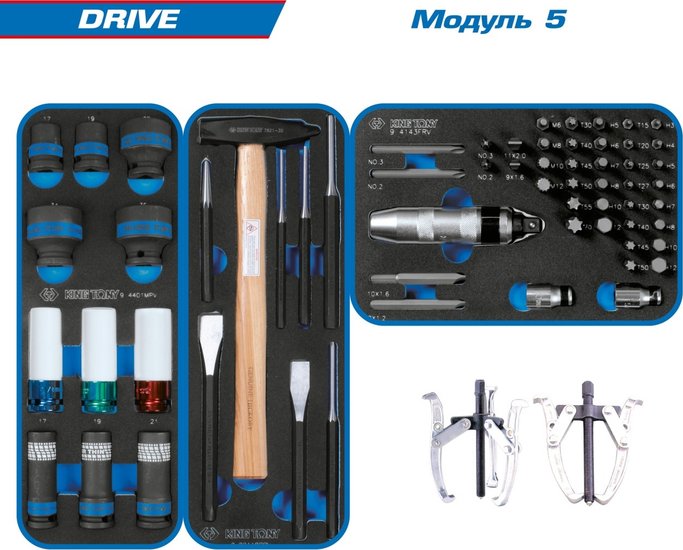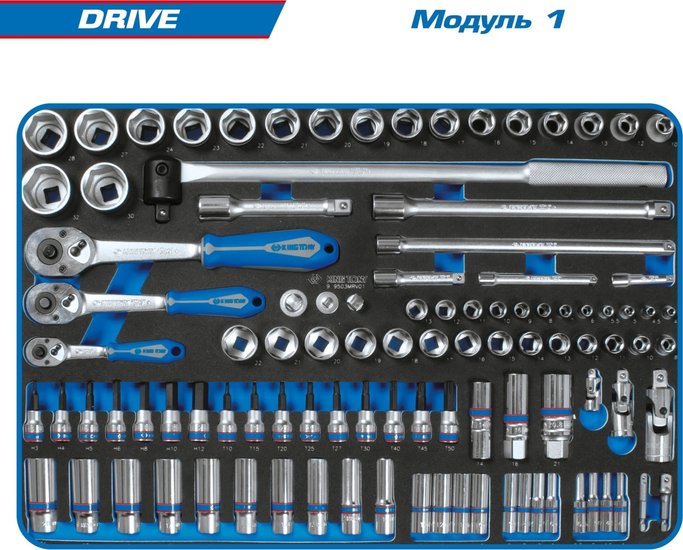 • Комплектация Набор инструментов DRIVE 934-251MRVD, 10 ложементов, 5 модулей
