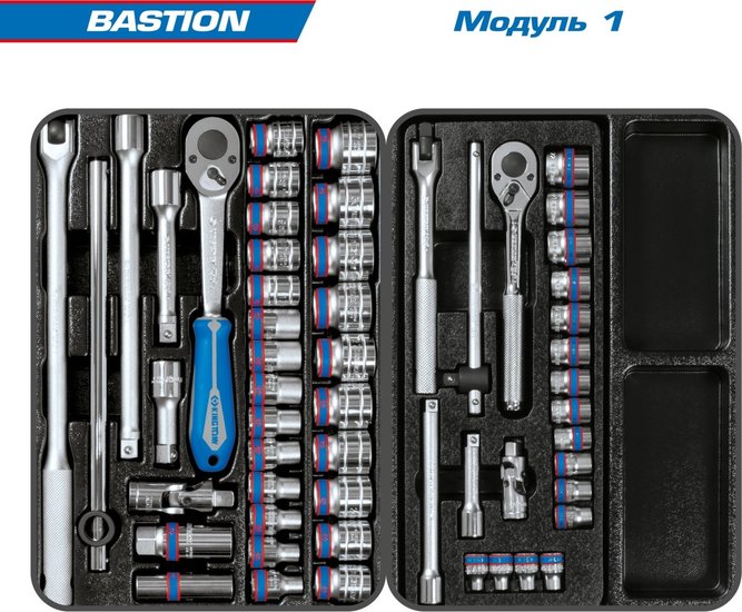• Комплектация Набор инструментов BASTION 946-100MRD-MT, 204 предмета, 10 ложементов, 6 модулей
