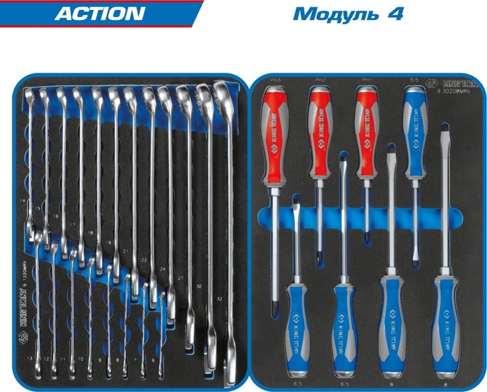 • Комплектация Набор инструментов ACTION 934-327MRVD, 327 предметов, 15 ложементов, 7 модулей