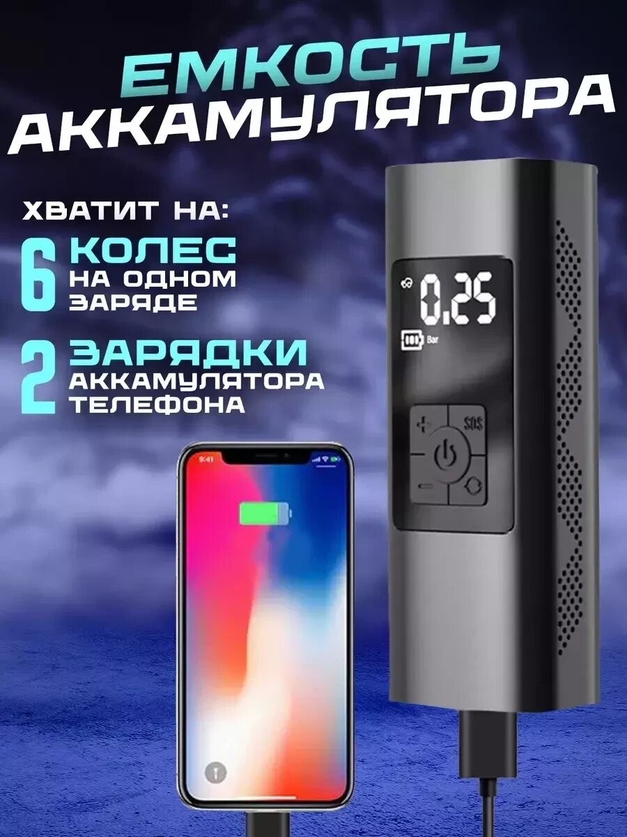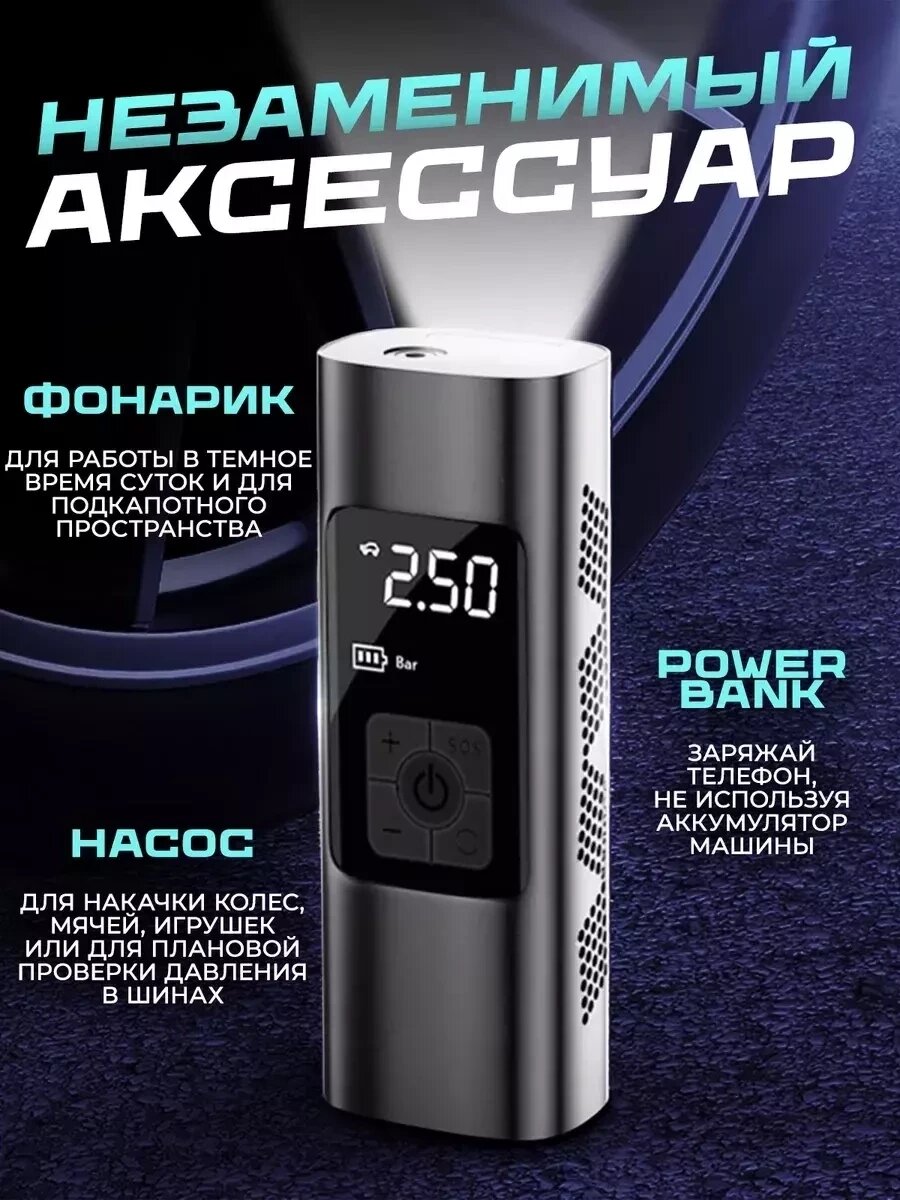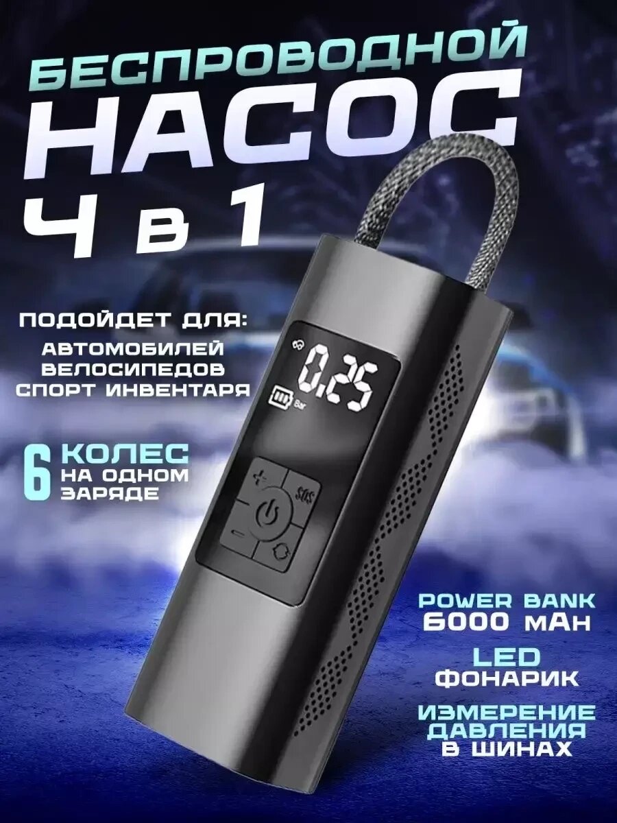 Автомобильный беспроводной насос компрессор 4 в 1