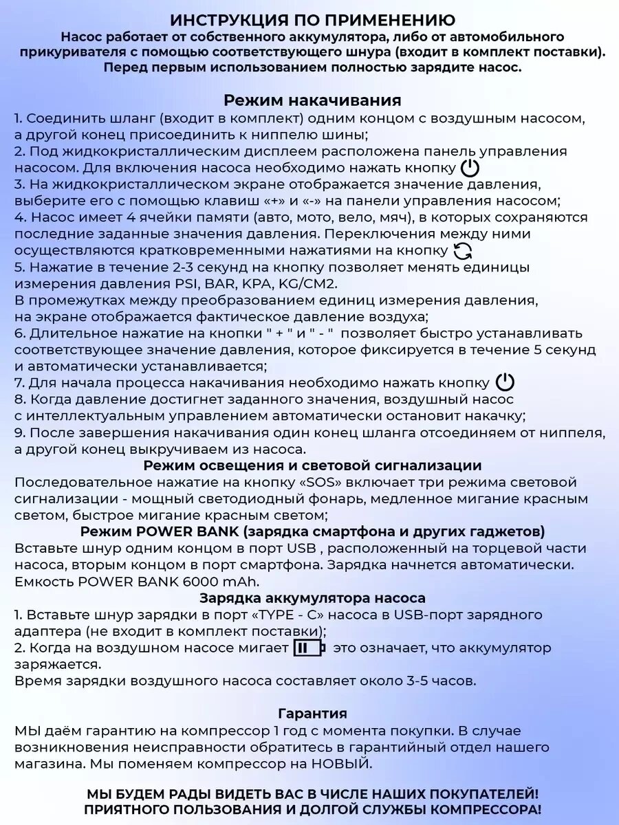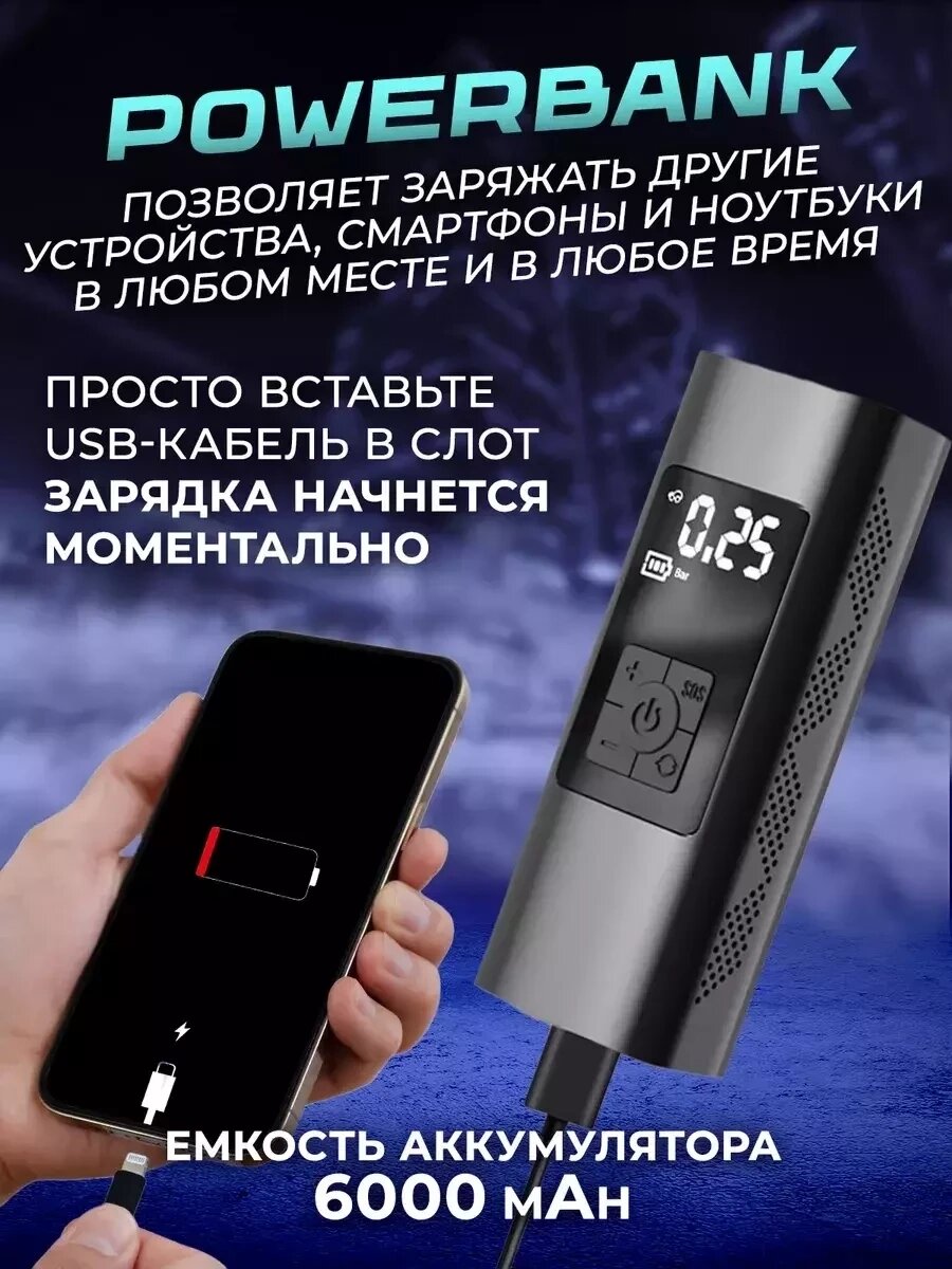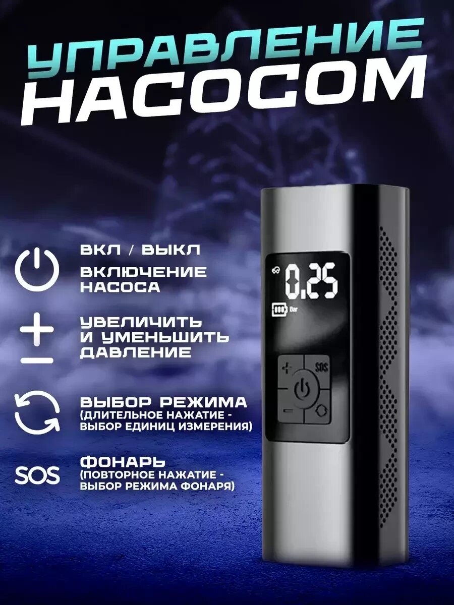 Автомобильный беспроводной насос компрессор 4 в 1