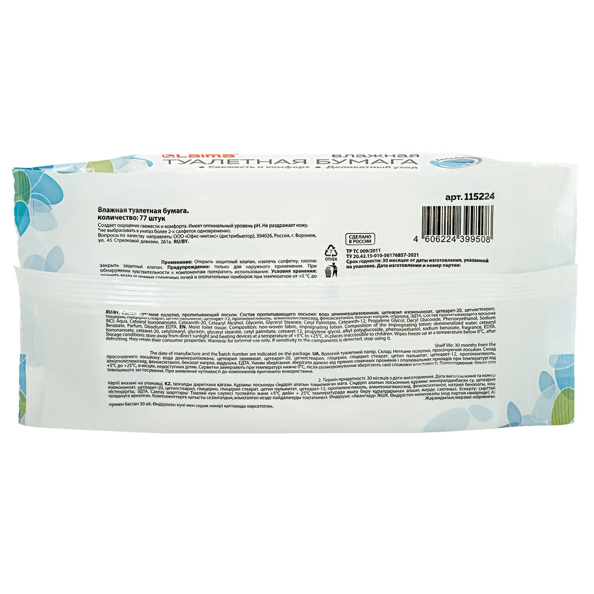 Влажная туалетная бумага Laima 115224 (77шт)