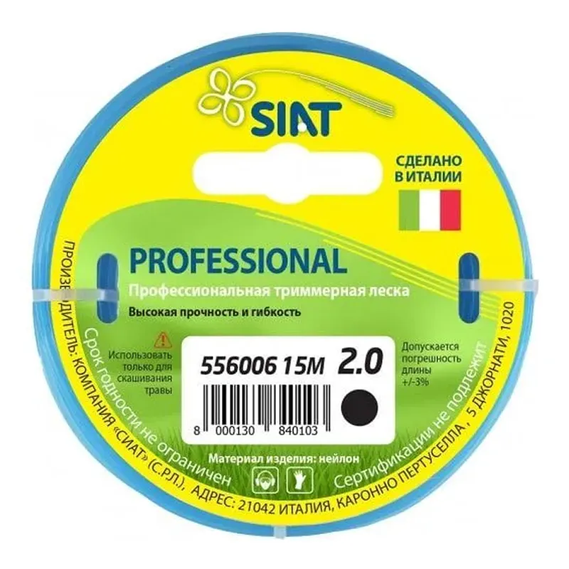 Леска для триммера Professional SIAT — это итальянская профессиональная леска изготовленная из нейлонового материала высокой прочности, подходит для всех видов триммеров.