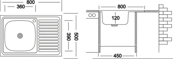 - Ширина мойки 80 см