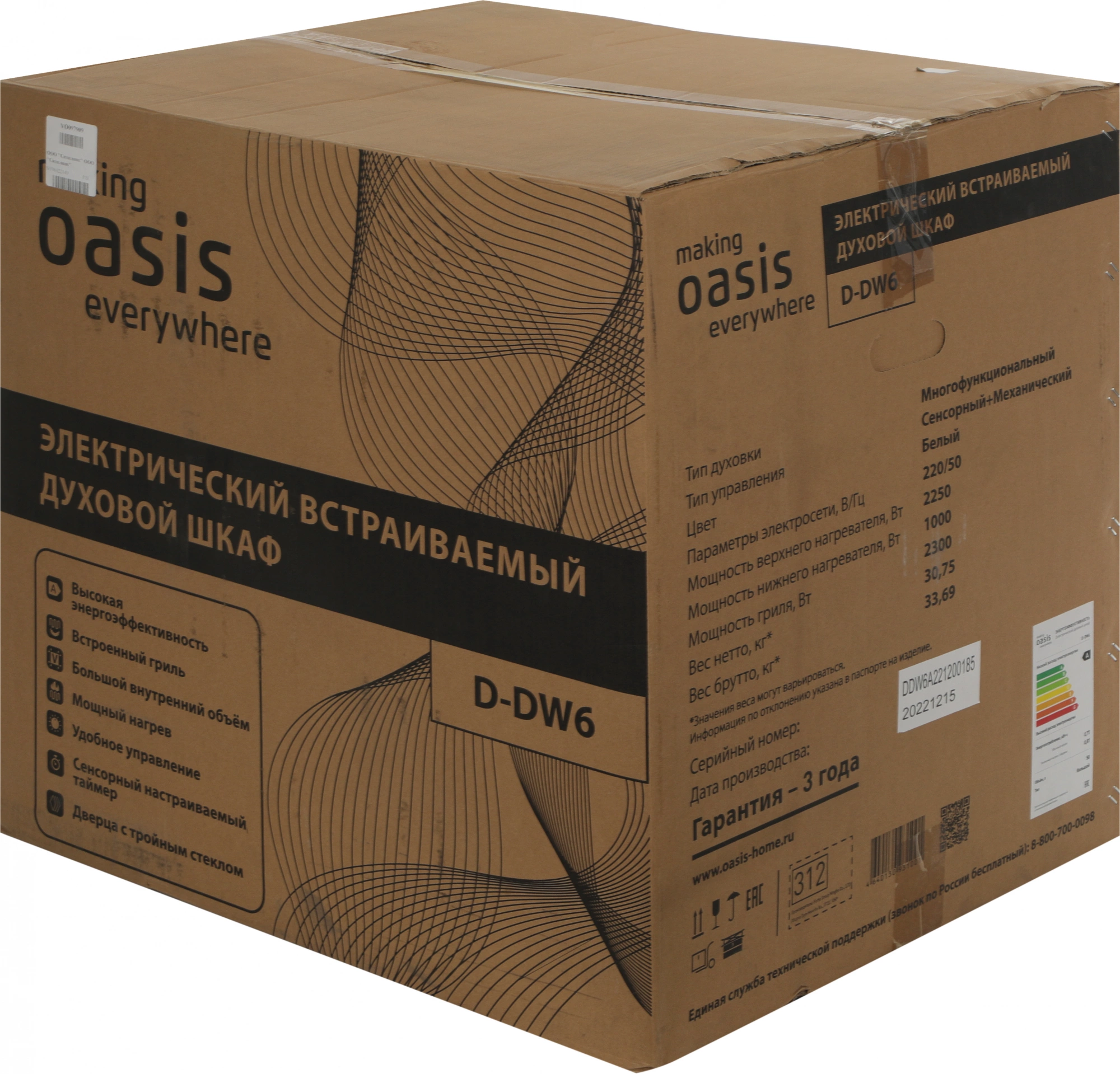 Духовой шкаф Электрический Oasis D-DW6 стекло белое
