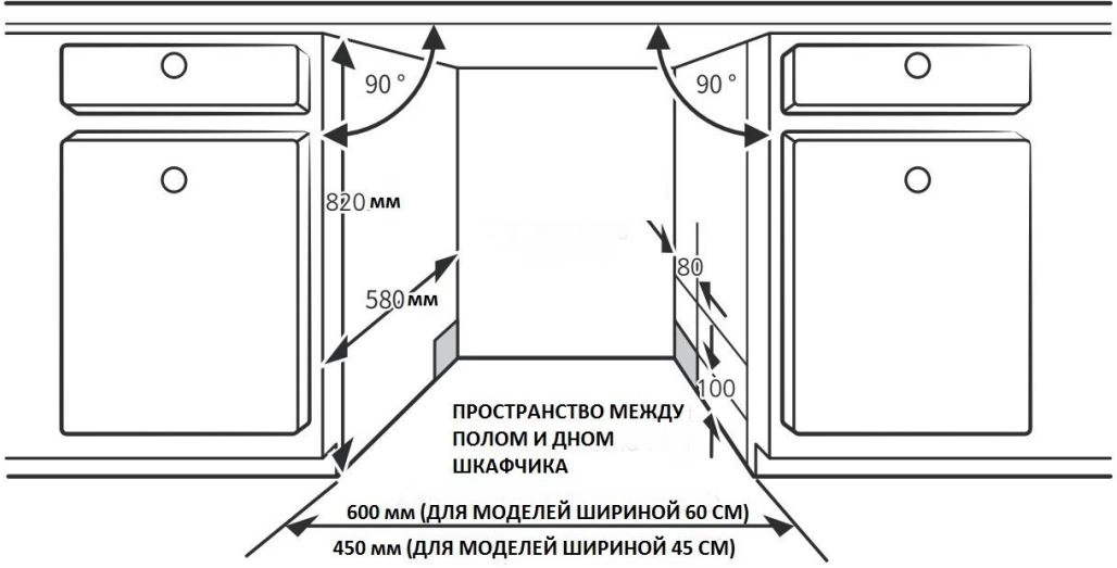Размеры для встраивания88x45x58см