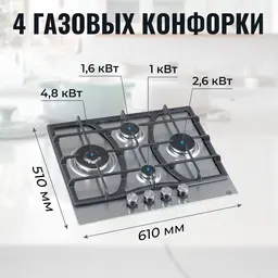 Газовая варочная поверхность MBS PG-609 нержавеющая сталь