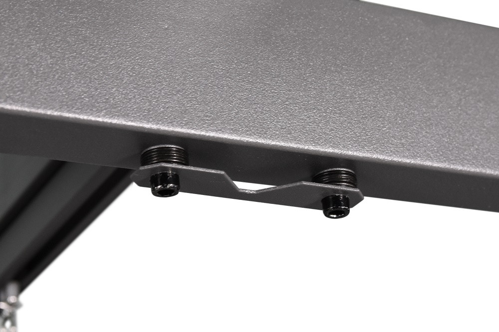 • Водонепроницаемая ткань, образующая навес, натянута на рельсы и тросы.