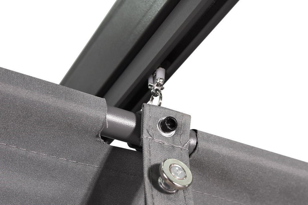 • Складная крыша: положение навеса регулируется - поэтому в зависимости от ваших предпочтений и текущих потребностей под беседку можно впустить больше света.