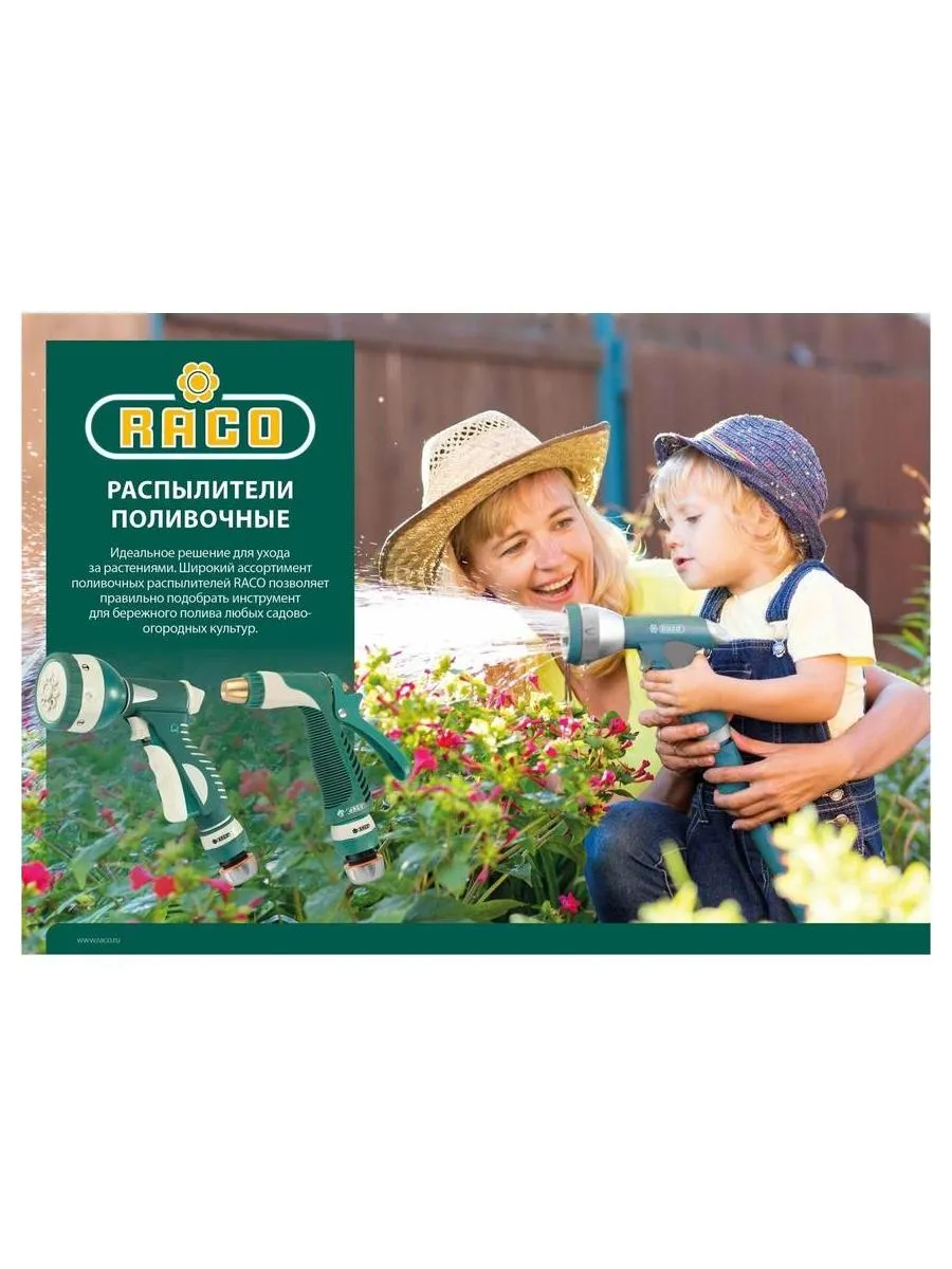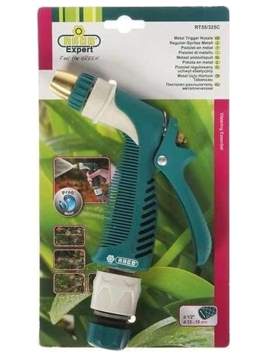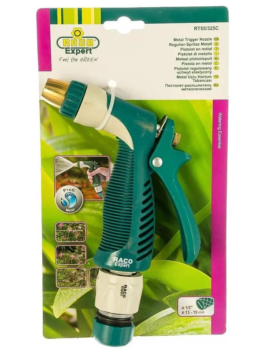 Описание товара Пистолет поливочный RACO 325C, 1/2?, плавная регулировка, с соединителем металлический с TPR (4256-55/325C)
