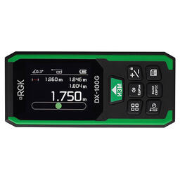 Лазерный дальномер RGK DX-100G – профессиональный измерительный инструмент строительного назначения, предназначенный для использования на дистанциях до 100 м, с помощью которого можно выполнять обмеры участков, строений и прочих объектов. Прибор оборудован зеленым излучателем, упрощающим выполнение работ на ярком солнце – за счет хорошей различимости маркера, используемого для визуального наведения, а встроенный инклинометр позволяет контролировать величину вертикальных углов и производить выравнивание. К преимуществам изделия относится наличие цветного графического дисплея, обеспечивающего высокую наглядность и информативность, а также аккумуляторного питания с подзарядкой через USB Type-C, за счет чего инструмент отличается экономичностью, не нуждаясь в замене батареек.