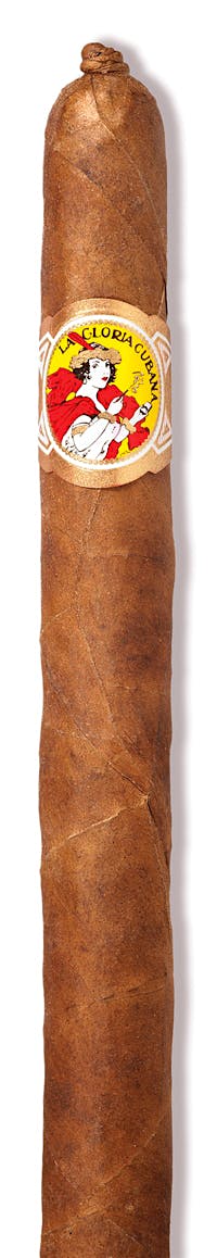A pigtailed cigar with an uncut foot. It draws and burns evenly and is a predominantly woody-tasting smoke that leaves the palate a bit dry.