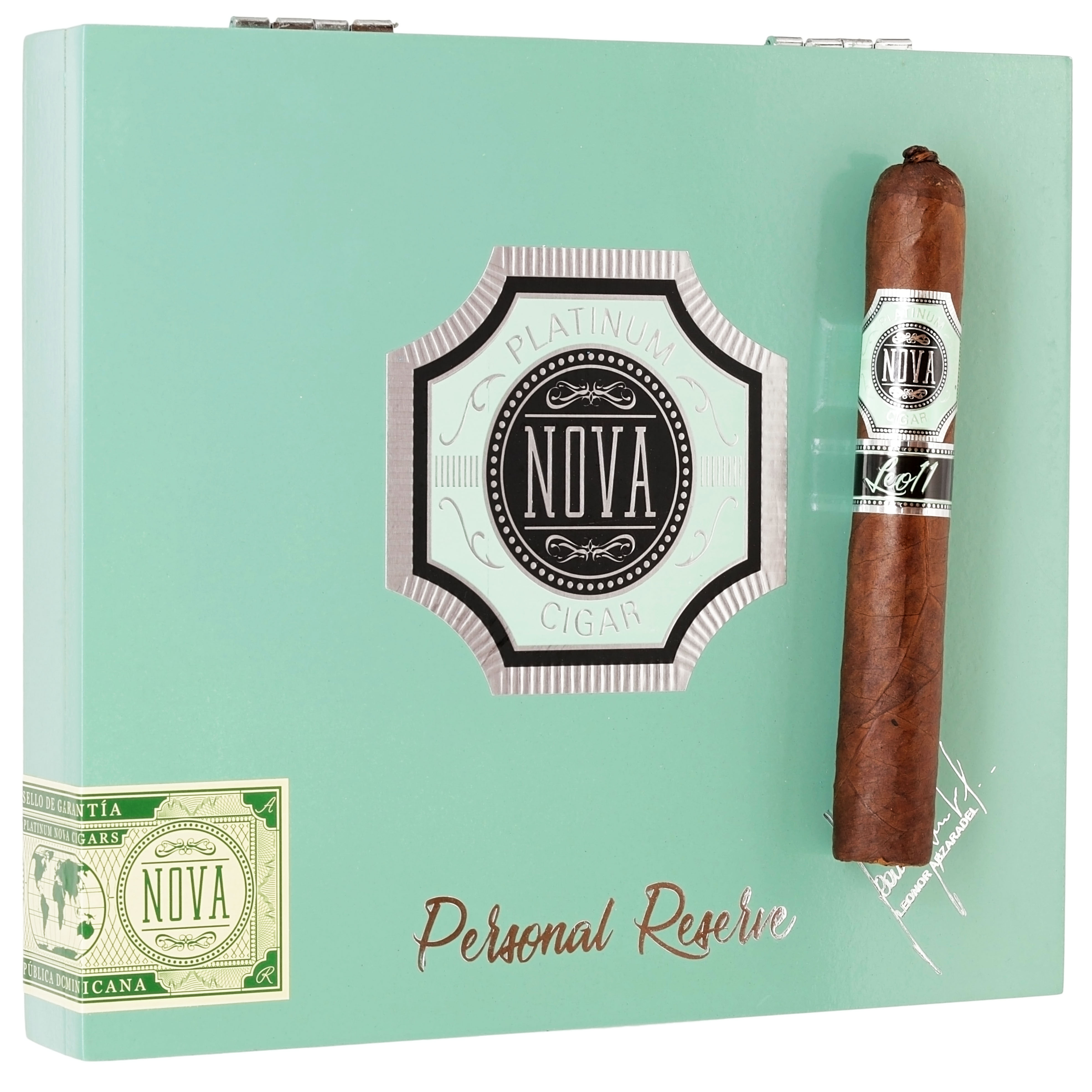 A bold, full-bodied cigar with a leathery, spicy, and chocolatey profile. Its oily Ecuadorian Habano wrapper covers a Nicaraguan binder and filler. The Platinum Nova Leo 11 is known for its potency, smooth draw, and excellent construction. The cigars are handmade in the Dominican Republic.