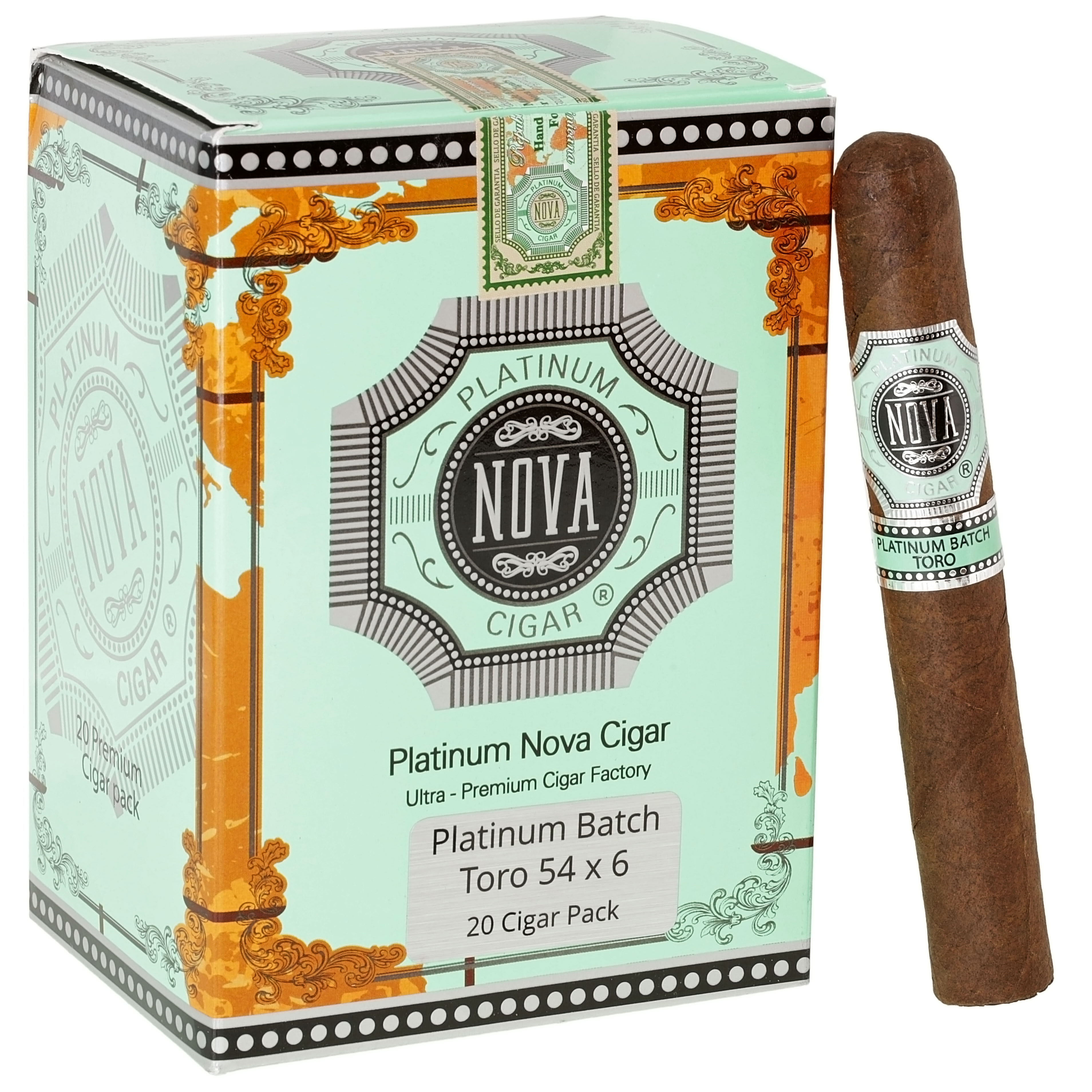 This potent but not overpowering cigar delivers notes of leather, cinnamon, and spice with an earthy aroma. Its Mexican San Andres maduro wrapper cloaks a Dominican Republic Havanna Vuelta Arriba binder and Dominican filler. The Platinum Nova Batch Toro is handmade in the Dominican Republic.
