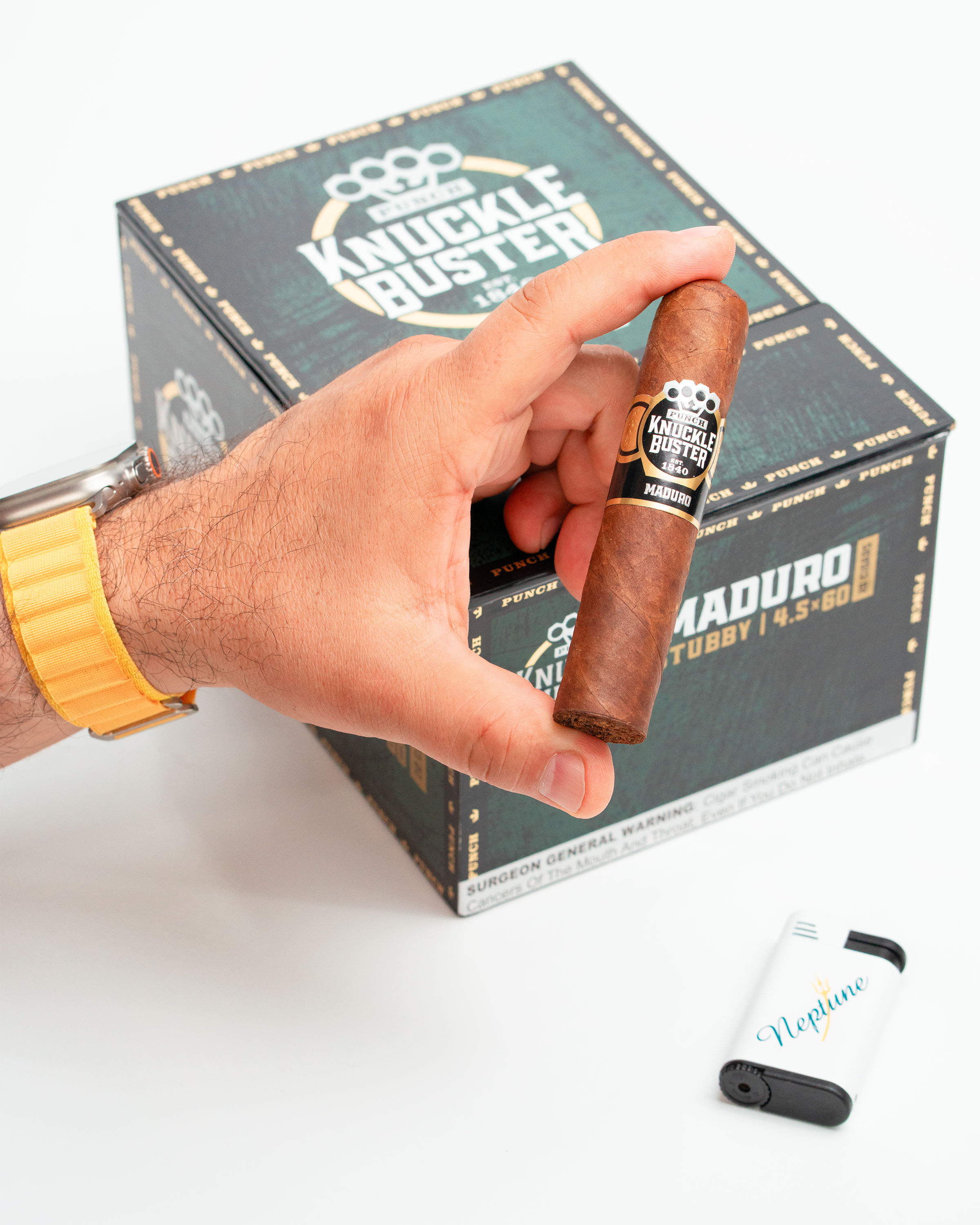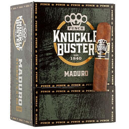 A well-balanced, medium-bodied cigar that delivers notes of sweetness, nuts, and cocoa. Its rustic Connecticut Broadleaf wrapper covers an Indonesian binder and a Nicaraguan filler. Handmade in Honduras, the Punch Knuckle Buster Maduro is an excellent everyday smoke with a fistful of flavors at a budget pleasing price. The cigar pairs well with a stout beer, port wine, or coffee.