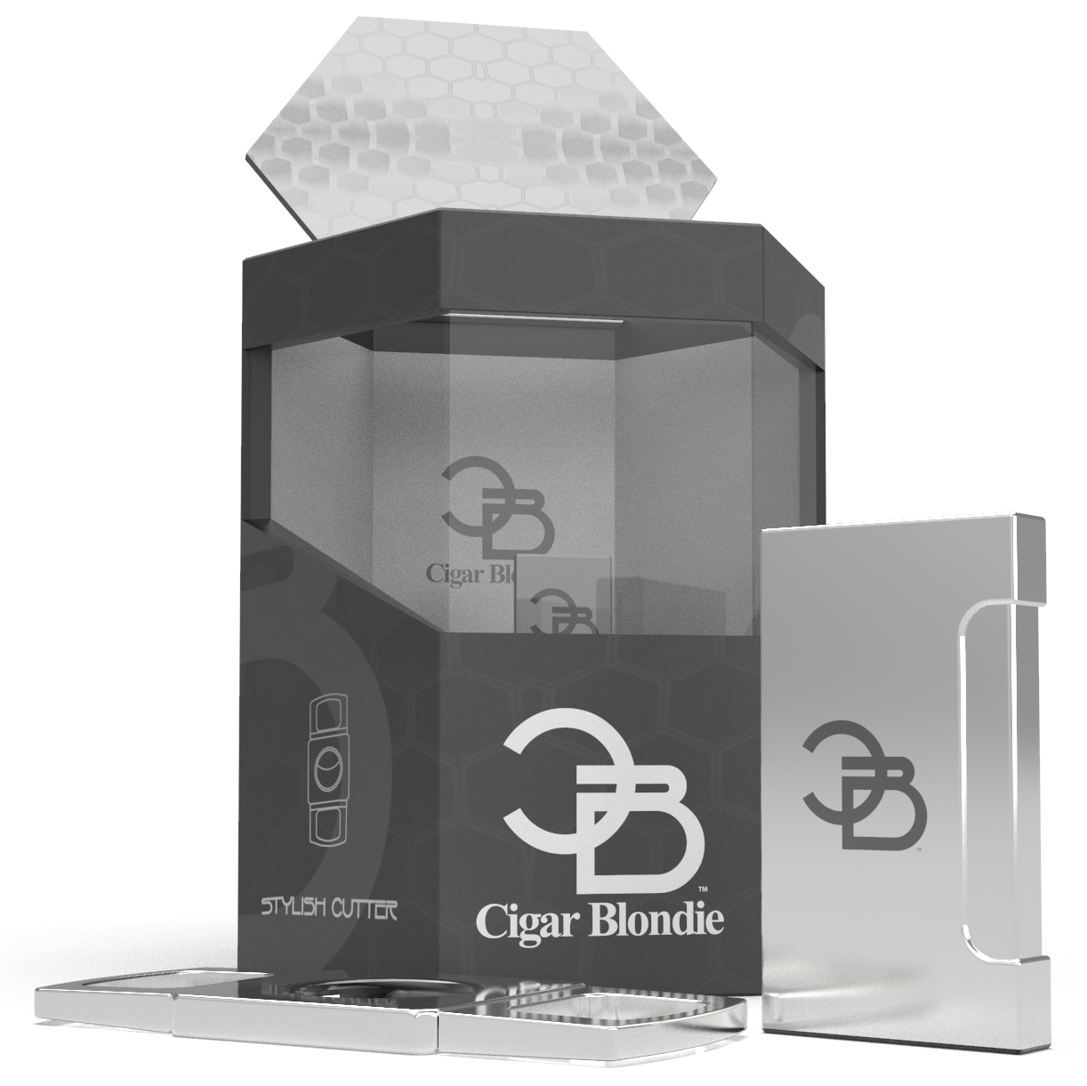 This beautifully appointed set features a double guillotine cutter and a flat flame, single-torch lighter. Gift boxed. The set is the creation of Platinum Nova Cigar’s CEO Leo Abzaradel (or Cigar Blondie as she is known in social media). The accessories in the collection seamlessly blend form with function and complement the look and feel of Nova Cigars.