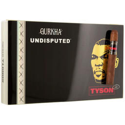 A medium-bodied smoke that delivers a winning combination of sweetness, dark chocolate, and peppery notes. Its delicious Mexican San Andres maduro wrapper covers a Cameroon binder and USA Broadleaf Corojo long-filler leaves. The Gurkha Tyson 2.0 Undisputed Maduro cigars are expertly handmade by the El Artista cigar factory in the Dominican Republic.