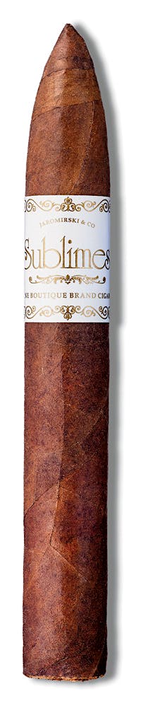 A figurado with a slightly tight draw and even burn. Leather and coffee notes are supported by hints of nuts and orange peel with a touch of chocolate on the finish.