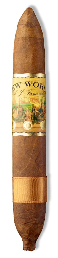 A striking, box-pressed belicoso with an oily wrapper and tapered ends. The draw starts a bit firm, but opens up once the flame burns past the nipple foot. First puffs of lemon oil and dried pine needle become earthy with accents of dried fruit and toffee. There is a touch of vanilla on the long, oaky finish. It burns evenly throughout.