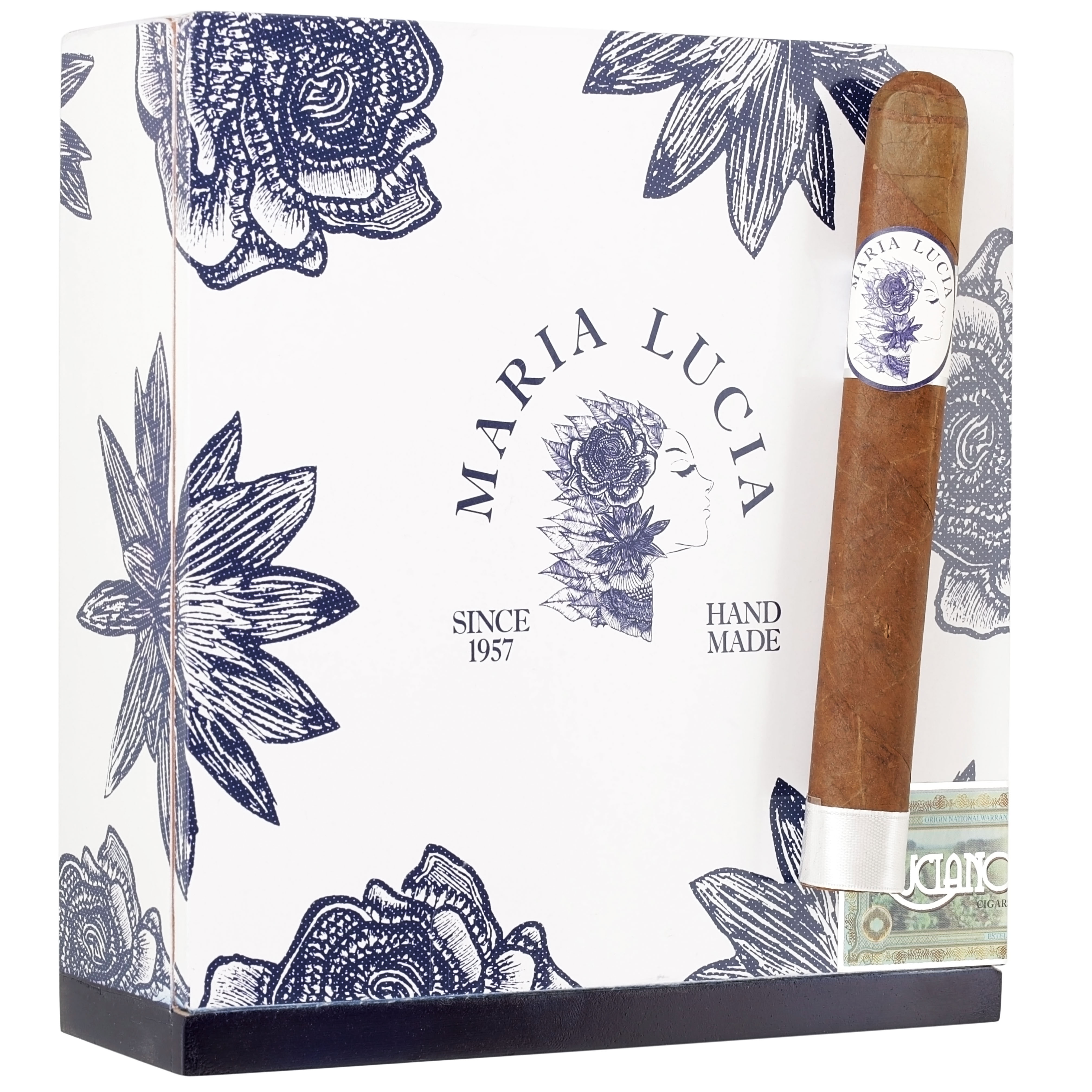Intricate woody, spicy, earthy, and sweetness notes reveal themselves when you light up this bold yet flavorful cigar. Its mouthwatering Connecticut Broadleaf wrapper covers an Ecuadorian Sumatra and Habano ’92 binder and filler leaves from Nicaragua, Peru, and the Dominican Republic. The Maria Lucia cigar has an overall versatile profile that will easily appeal to both seasoned and novice aficionados. The cigars are artfully handmade by Luciano Cigars in Nicaragua.