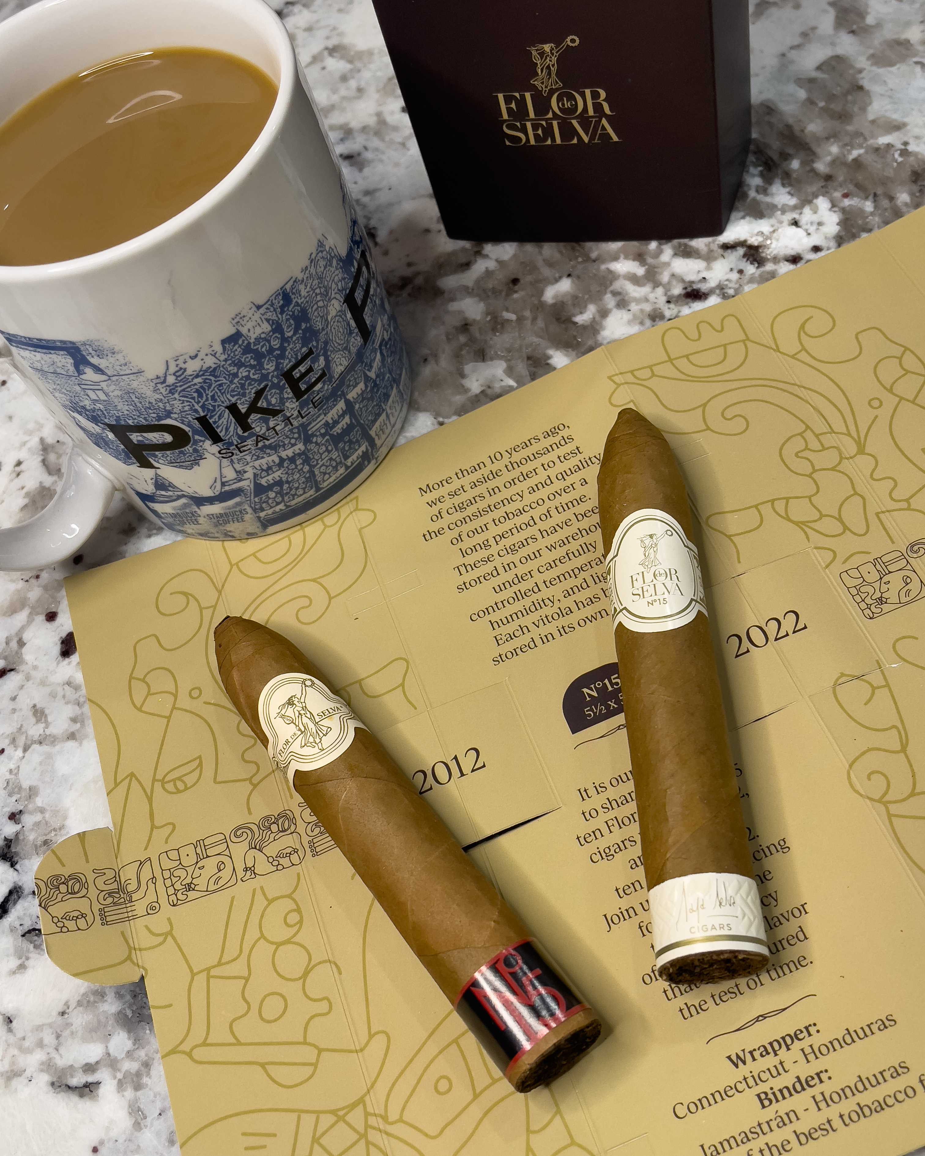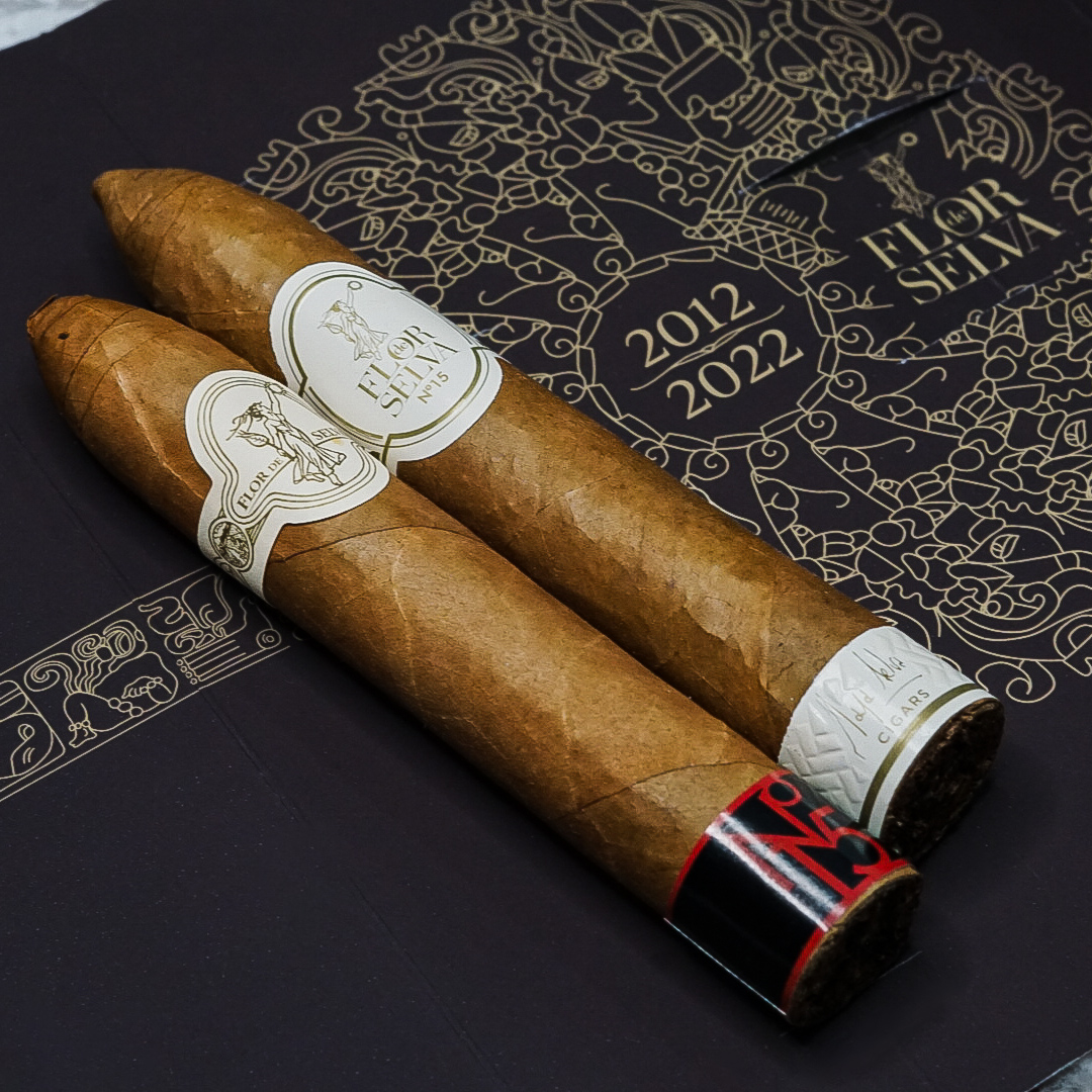 This specially prepared sampler offers a unique tasting experience. Each pack comes with two Flor de Selva No. 15 cigars by Maya Selva Cigars. One is a vintage cigar that was handmade in 2012 and aged in a closely monitored, climate-controlled environment. The other one was rolled in 2022. Both feature a smooth Honduran Connecticut Shade wrapper, a Honduran Jamastran binder and Honduran filler leaves. Maya Selva Cigars created this extraordinary sampler to allow cigar aficionados the opportunity to compare and contrast a vintage cigar with a recently rolled version. This is one vintage taste test you do not want to miss. To make it easy to perform this taste test, Maya Selva removed the guess work and risks involved with aging a cigar. All you have to do is smoke the cigars. No further aging is required. It is recommended you smoke both cigars at the same time, alternating between them. However, you can smoke one cigar and then the other. The choice is yours. Either way, we suggest you write down your impressions and let us know in the comments how the taste test went for you. The Flor de Selva No. 15 2012-2022 Pack of 2 is a limited-release sampler and it is only available while supplies last (be sure to order more than one).