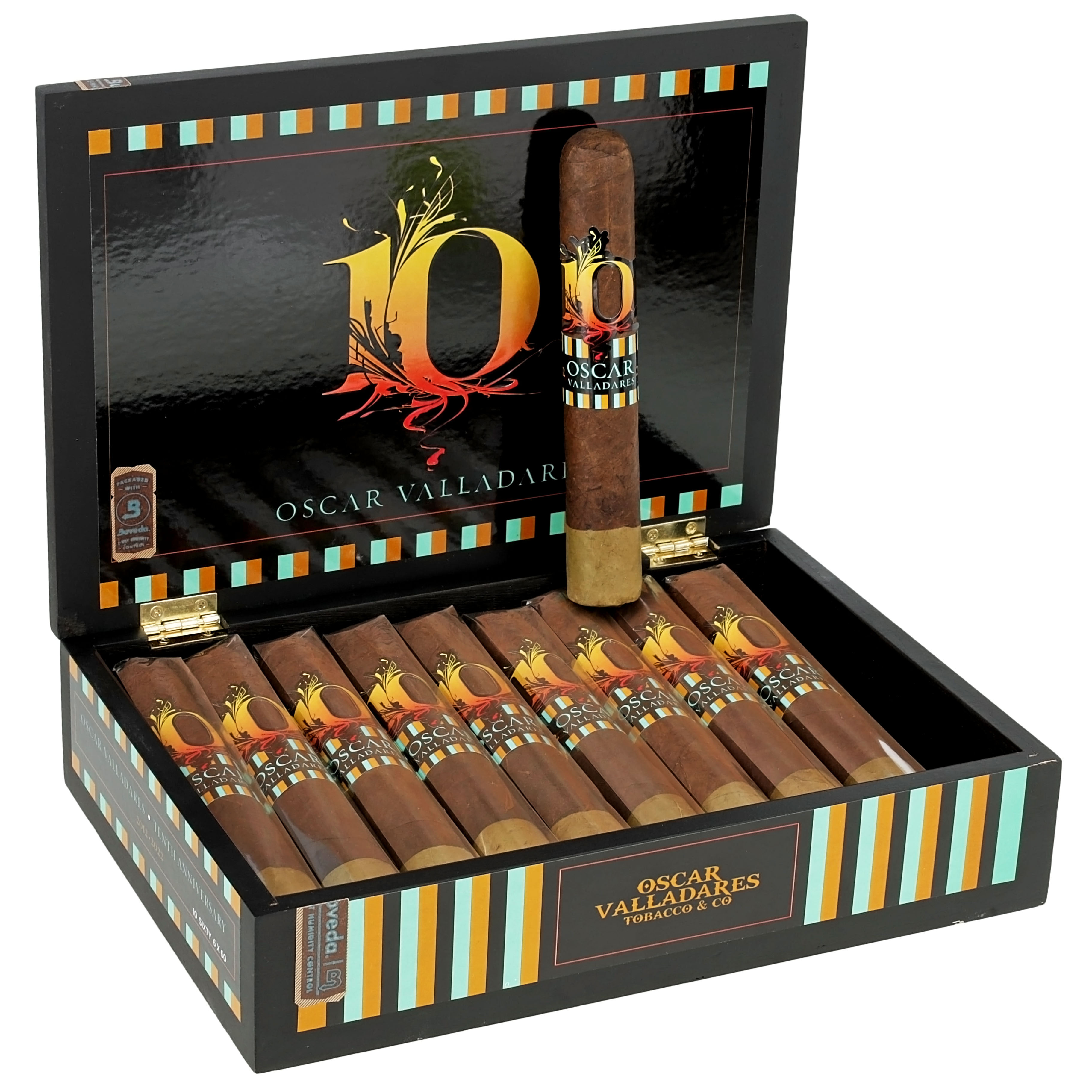 A medium bodied cigar with a creamy, nutty, and earthy profile accompanied by a grassy and earthy aroma. Its Honduran binder and Nicaraguan filler are covered by a dual wrapper composed of a Mexican maduro and Honduran candela leaf at the foot. The filler leaves for this celebratory cigar have been aged for five years, which contributes to the cigar’s memorable smoking experience. The cigars are handmade at the Oscar Valladares Tobacco & Co. factory in Danli, Honduras. As its name implies, the Oscar Valladares 10th Anniversary cigar was crafted to commemorate Oscar Valladares Cigars’ first successful decade in the cigar industry