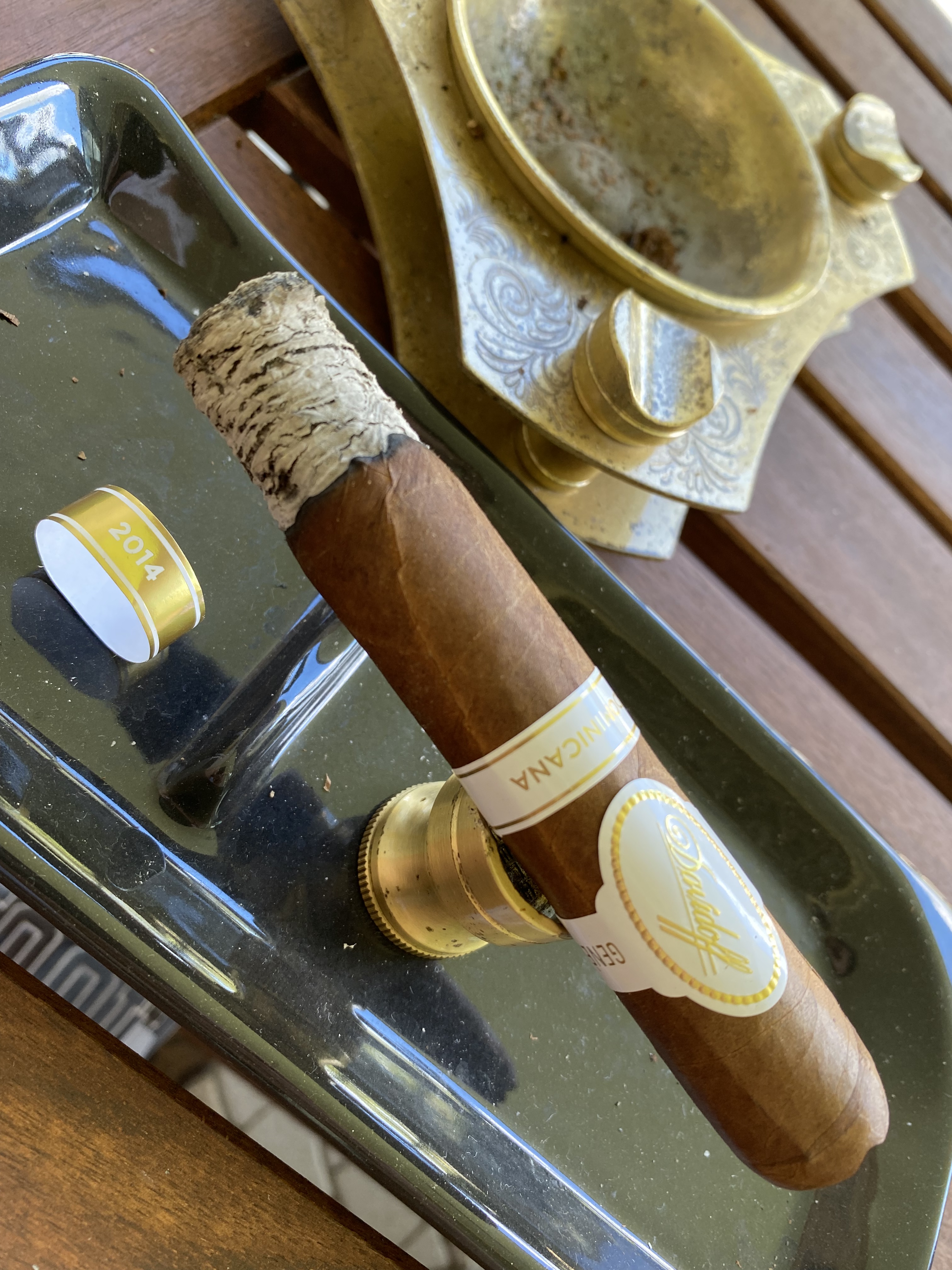 The Davidoff Dominicana Robusto is a medium to full bodied, limited-edition cigar that was crafted to commemorate Davidoff’s rich history with the Dominican Republic. Its filler is composed of vintage tobaccos from a 2014 harvest. It includes the following leaves: Corojo 99 Seco, Piloto Viso, San Vicente Mejorado Seco, San Vicente Seco, and Yamasa Viso. These specially selected long-filler leaves are then encased in an Ecuadorian Hybrid 151 binder, which is expertly cloaked by a Dominican Hybrid 257 wrapper. This specially cultivated wrapper has a flawless, dark chocolatey color that is simply irresistible. Prior to shipping, the cigars are allowed to mature for 12 months to enhance their flavor profile. The Davidoff Dominicana offers up rich notes of spice, pepper, oak, and cream. It is handmade at the Cigars of Davidoff factory in the Dominican Republic.