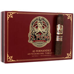 A potent yet smooth cigar with a rich earthiness, touches of cocoa, spice, and an overall meatiness. Its rustic Mexican San Andres maduro wrapper cloaks a Nicaraguan binder and filler. Handmade in Nicaragua, at AJ Fernandez’s San Lotano factory. “El Pulpo” is Spanish for “the octopus.” And like its namesake, the El Pulpo by Artesano del Tobacco will envelop your palate with its rich complexity and unique retro-hale and never let you go. So, be sure to buy a box or two.