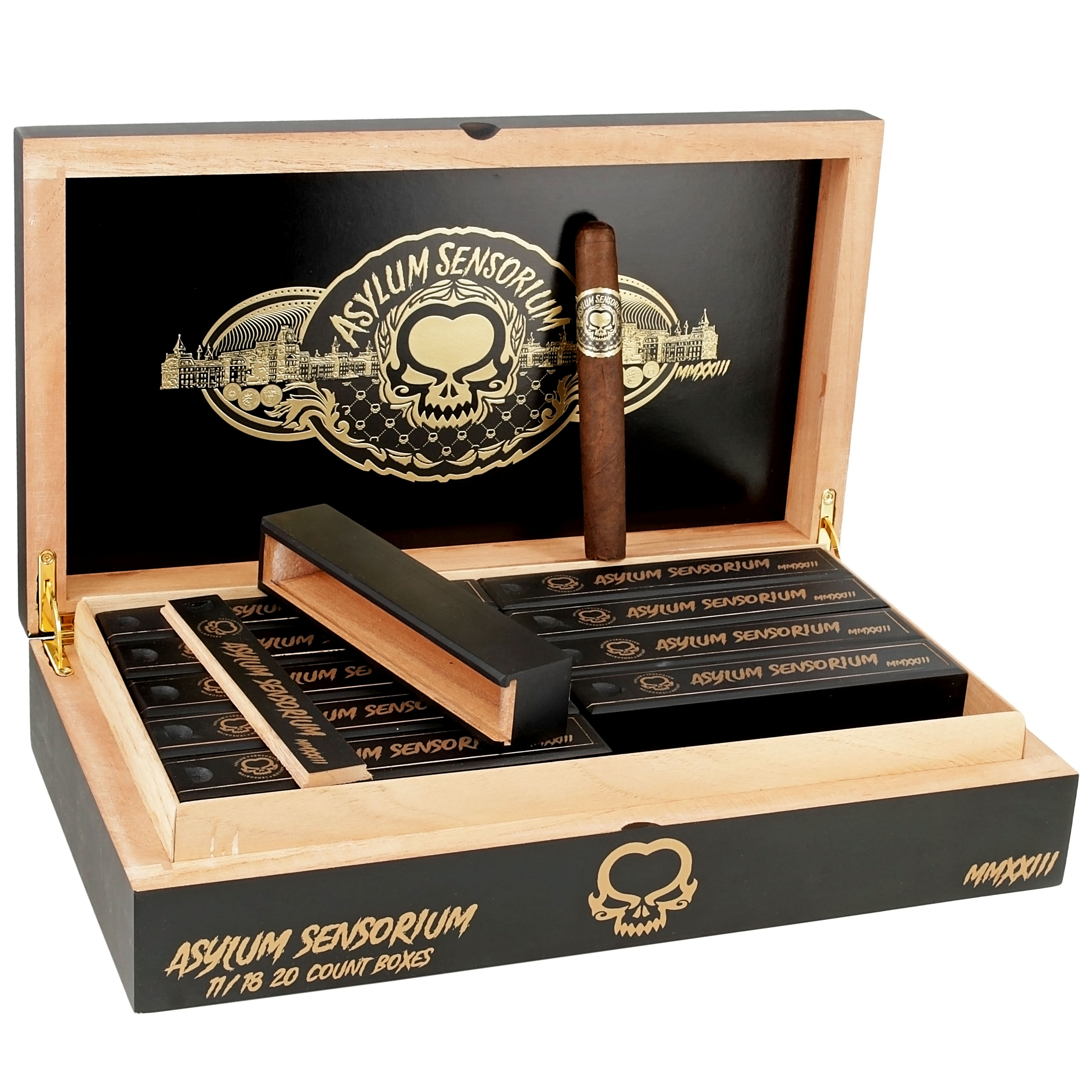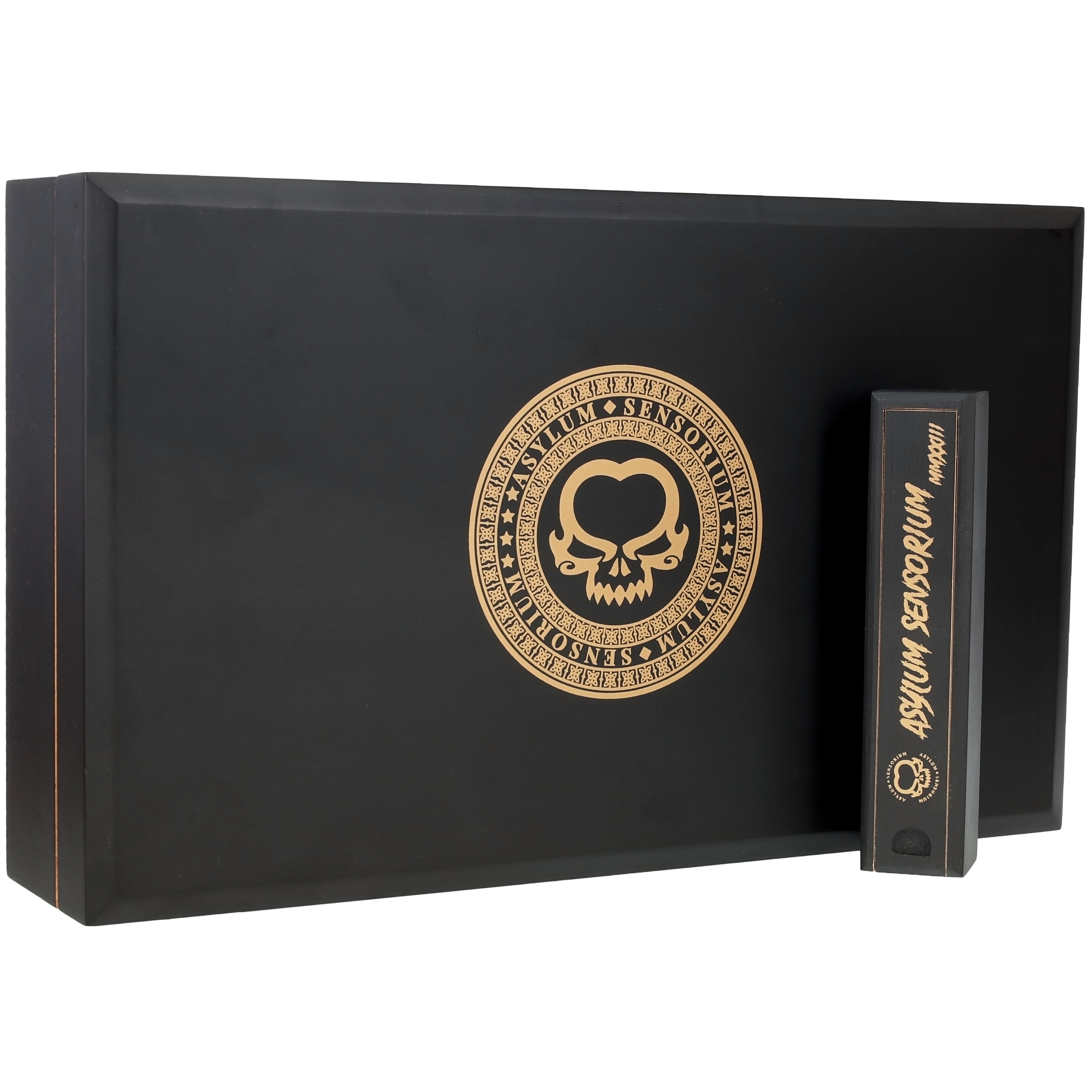 A potent yet complex cigar that offers an invigorating smoking experience highlighted by notes of spice, sweetness, and pepper. This Honduran puro sports a tasty, smooth maduro wrapper. Its filler includes the Eiroa family’s proprietary Authentic Corojo tobacco and the difficult to grow Pinareno Cuban-seed tobacco. Pinareno is very susceptible to tobacco diseases. When added to a blend this rarely used tobacco adds a flavorful dimension to the cigar’s profile. Handmade in Honduras, the Asylum Sensorium will awaken the senses of both the traditional and contemporary cigar aficionados. Once rolled, each cigar is nested in a wooden coffin to protect it and to preserve its flavor. Once smoked, you will want to make the Sensorium a part of your rotation, so be sure to buy it by the box. It’s worth the investment.