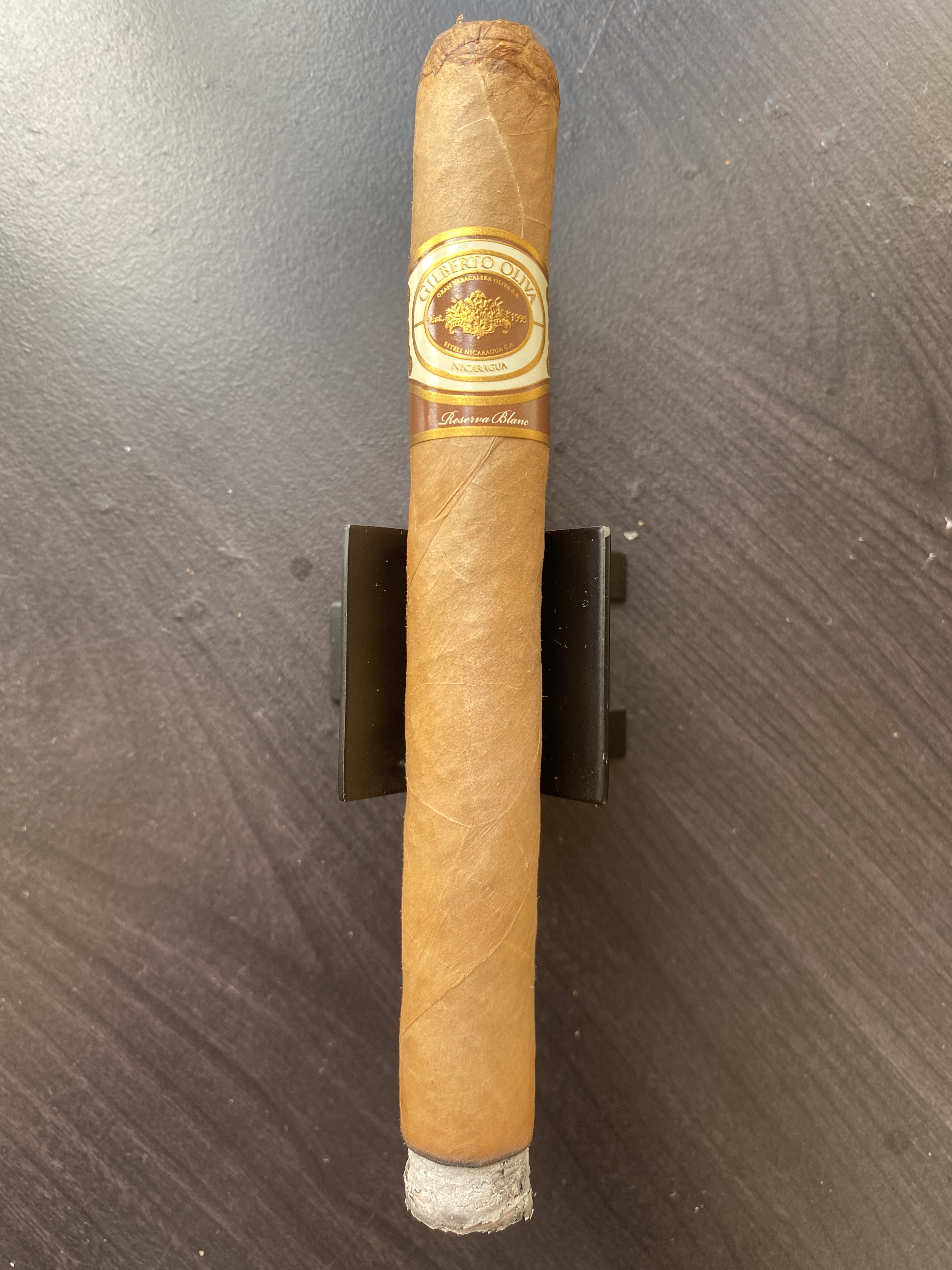 A mild smoke with a creamy profile, hints of spice, and a nutty and coffee finish. Its Ecuadorian Connecticut Shade wrapper drapes an Ecuadorian binder and aged Nicaraguan long-filler leaves. Handmade in Nicaragua. The Gilberto Reserva Blanc was crafted to offer a mild smoking experience without sacrificing flavor.