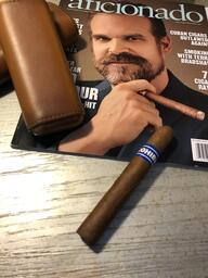 A medium-bodied cigar with deep woody, earthy, leathery, creamy and cinnamon notes. It features a dark Honduran wrapper placed over a Honduran binder and a Dominican, Honduran, and Nicaraguan filler. This delicious three-nation blend creates a smooth smoking indulgence you will want to enjoy again and again. The Cohiba Blue Robusto is handmade in the Dominican Republic.