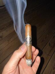 A medium-bodied smoke that offers warm toasty, woody, nutty, creamy, and sweetness notes. Its dark chocolatey Ecuadorian Habano wrapper cloaks a Nicaraguan binder and filler. The cigars are handmade by My Father Cigars in Nicaragua. The Tatuaje 20th Grande Merveille was crafted to mark the twentieth anniversary of this sought-after boutique cigar brand.