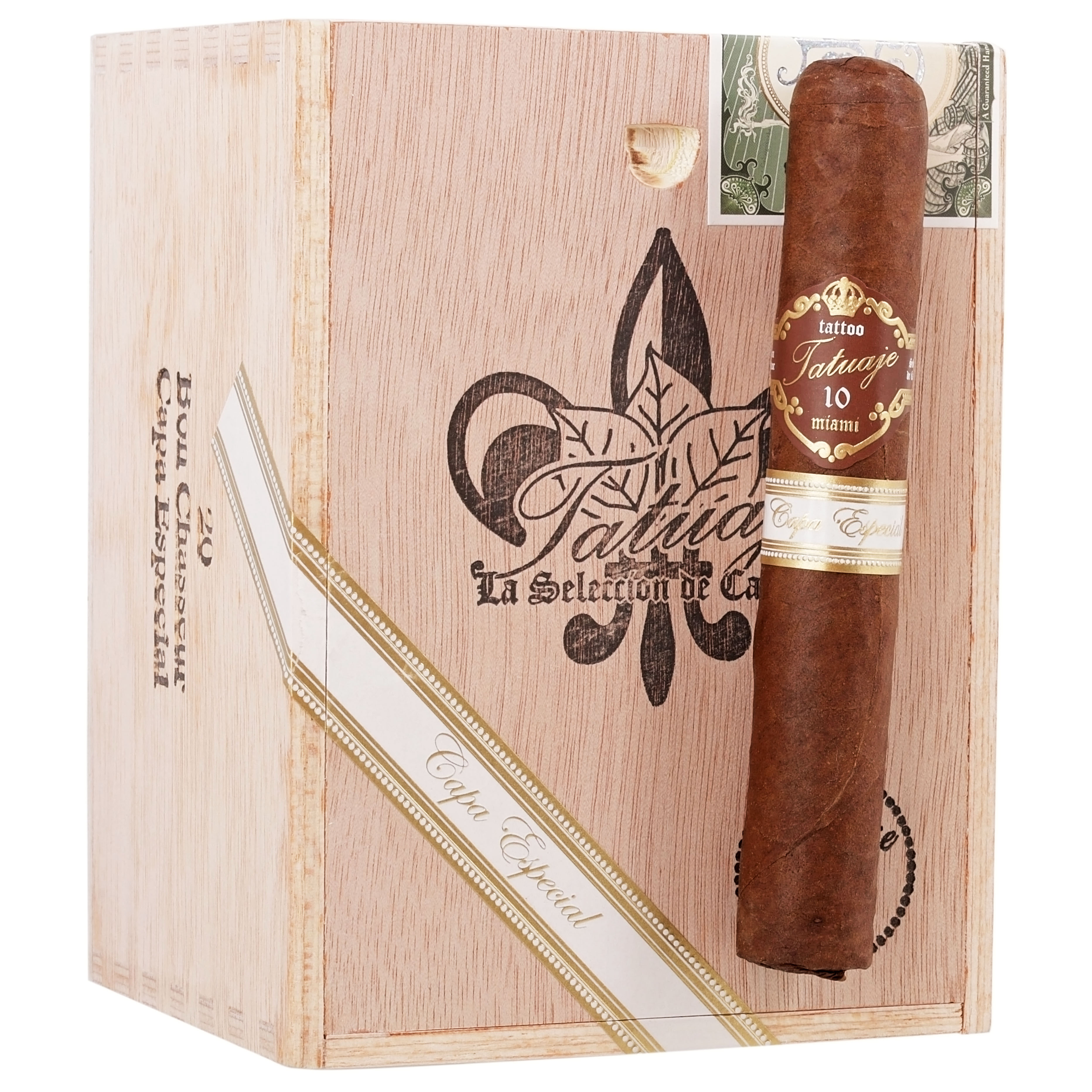 A medium-bodied smoke that offers soothing notes of tobaccos, sweetness, earth, and coffee accented with touches of spice. Its mouthwatering Ecuadorian Sumatra-seed maduro wrapper cloaks a Nicaraguan binder and filler. The cigars are handmade in Nicaragua by My Father Cigars. The Tatuaje Capa Especial Bon Chasseur is a line extension of Tatuaje’s 10th Anniversary series. This is a limited edition cigar. Only 3,000 boxes of 20 cigars per box were made. Order yours today!