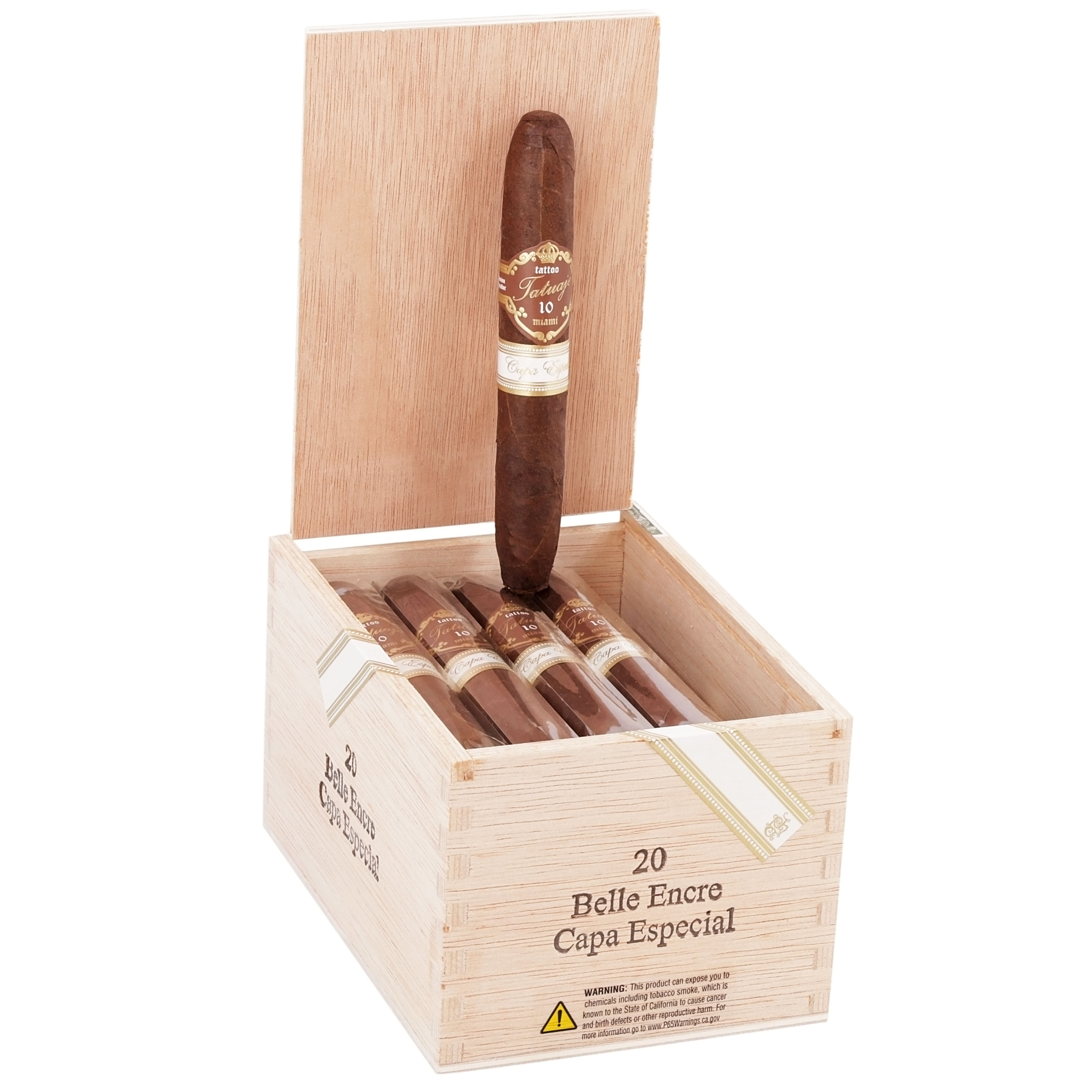 A medium-bodied smoke that offers soothing notes of tobaccos, sweetness, earth, and coffee accented with touches of spice. Its mouthwatering Ecuadorian Sumatra-seed maduro wrapper cloaks a Nicaraguan binder and filler. The cigars are handmade in Nicaragua by My Father Cigars. The Tatuaje Capa Especial Belle Encre is a line extension of Tatuaje’s 10th Anniversary series. This is a limited edition cigar. Only 3,000 boxes of 20 cigars per box were made. Order yours today!