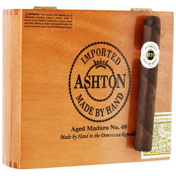The Ashton Aged Maduro No. 40 is a mild to medium strength toro that is handmade at Tabacalera Fuente in the Dominican Republic. Its Dominican binder and filler are covered by a delectable USA Connecticut Broadleaf maduro wrapper. This carefully aged cigar delivers a natural sweetness that is accented with notes of black pepper, chocolate, and nuts. The Ashton Aged Maduro received an enviable 92 rating from Cigar Aficionado in 2018.