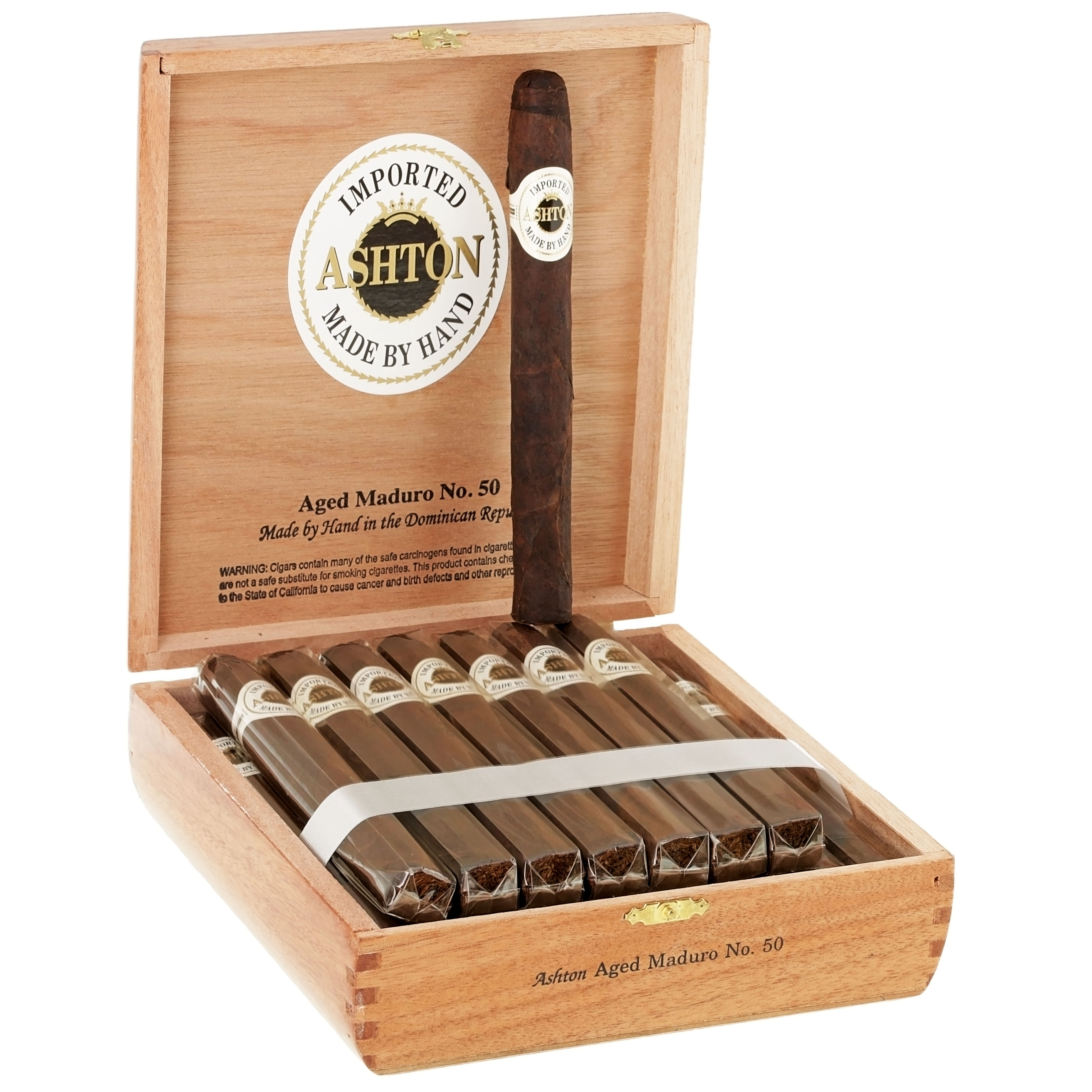 A medium-bodied cigar that offers delicious notes of almonds, black pepper, and dark cocoa. Its aged Dominican binder and filler are covered by an oily USA Connecticut Broadleaf maduro wrapper. The cigars are handmade in the Dominican Republic at the Tabacalera Fuente factory. Its deep and welcoming flavor profile provide an immersive smoking experience. The Ashton Aged Maduro pairs well with coffee, rum, or cognac. It received a 92-rating from Cigar Aficionado.