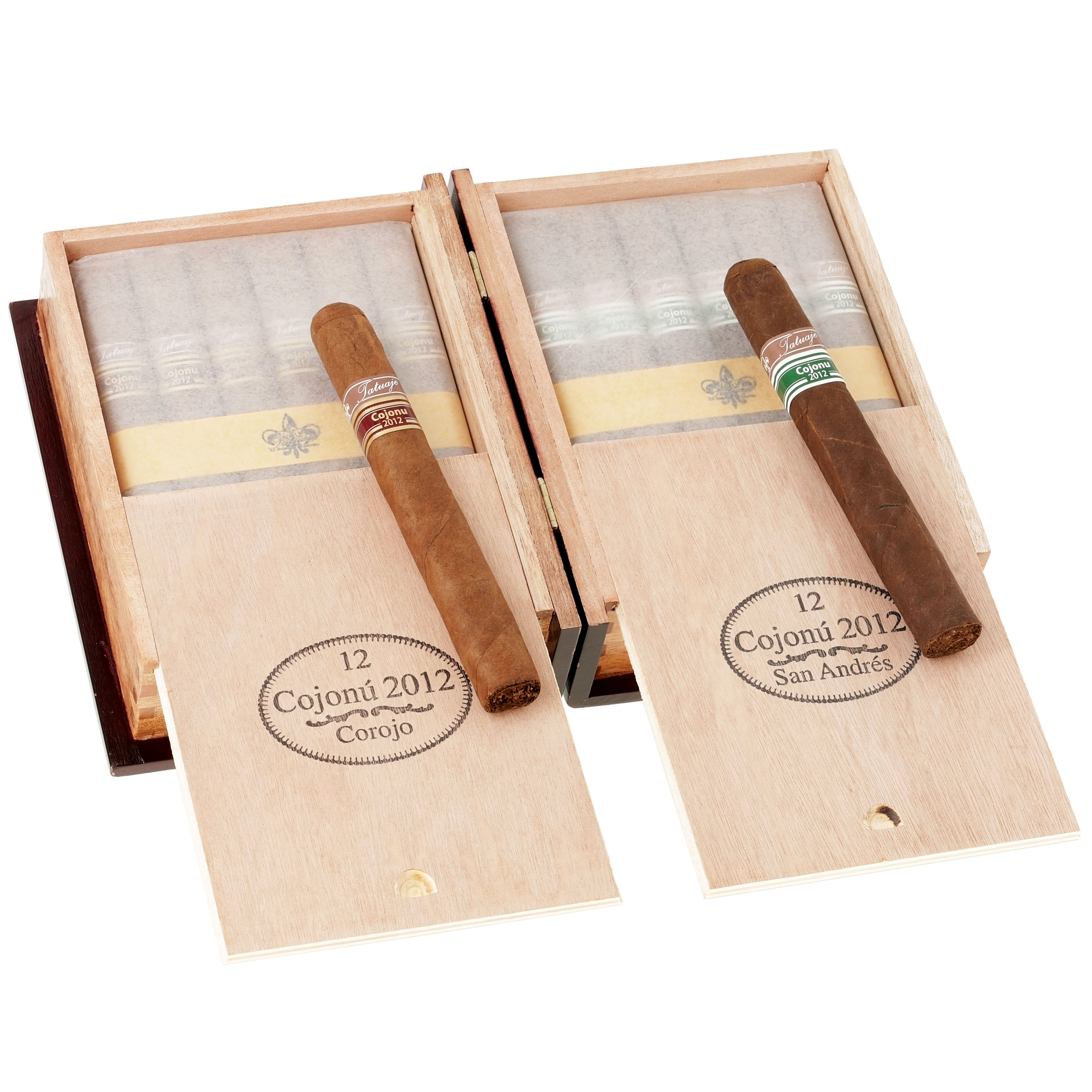 • 12 Tatuaje Cojonú 2012 Corojo cigars (6"1/2*52) – A Nicaraguan puro that sports an inviting Corojo wrapper and offers a savory medium to full-bodied smoking experience.
