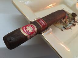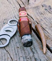 A spicy full-bodied cigar with delectable cherry and peppery notes. Its Ecuadorian Sumatra wrapper cloaks a Connecticut Broadleaf binder and a Dominican, Nicaraguan, and Honduran filler. Handmade in Honduras, the Punch Rare Corojo pairs well with a port wine or a dry red wine such as a Syrah.