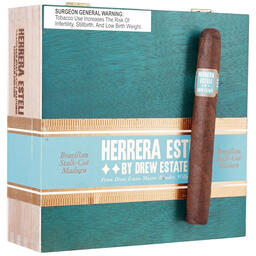 A potent and flavorful cigar that exudes noticeable notes of coffee, cocoa, pepper and citrus. It sports a dark Brazilian Mata Fina wrapper on top of a Connecticut Broadleaf binder and Nicaraguan filler. Handmade in Nicaragua at the La Gran Fabrica Drew Estate, the Herrera Esteli Brazilian Maduro will dazzle your taste buds with its intense, rich flavors.