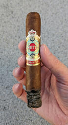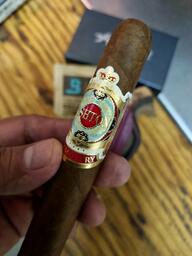 Warm earthy, leathery, coffee and vanilla notes give this cigar its memorable profile. Its red-hued Ecuadorian Habano Colorado wrapper covers a Dominican binder and a Nicaraguan and Dominican filler. The Symmetry is the first line extension to the Ashton brand in nearly a decade, and it is also the first time Ashton has used Nicaraguan tobacco in one of its cigars. The Ashton Symmetry Robusto was blended by Carlito Fuente, and it is handmade at the Tabacalera Fuente in Santiago, Dominican Republic.
