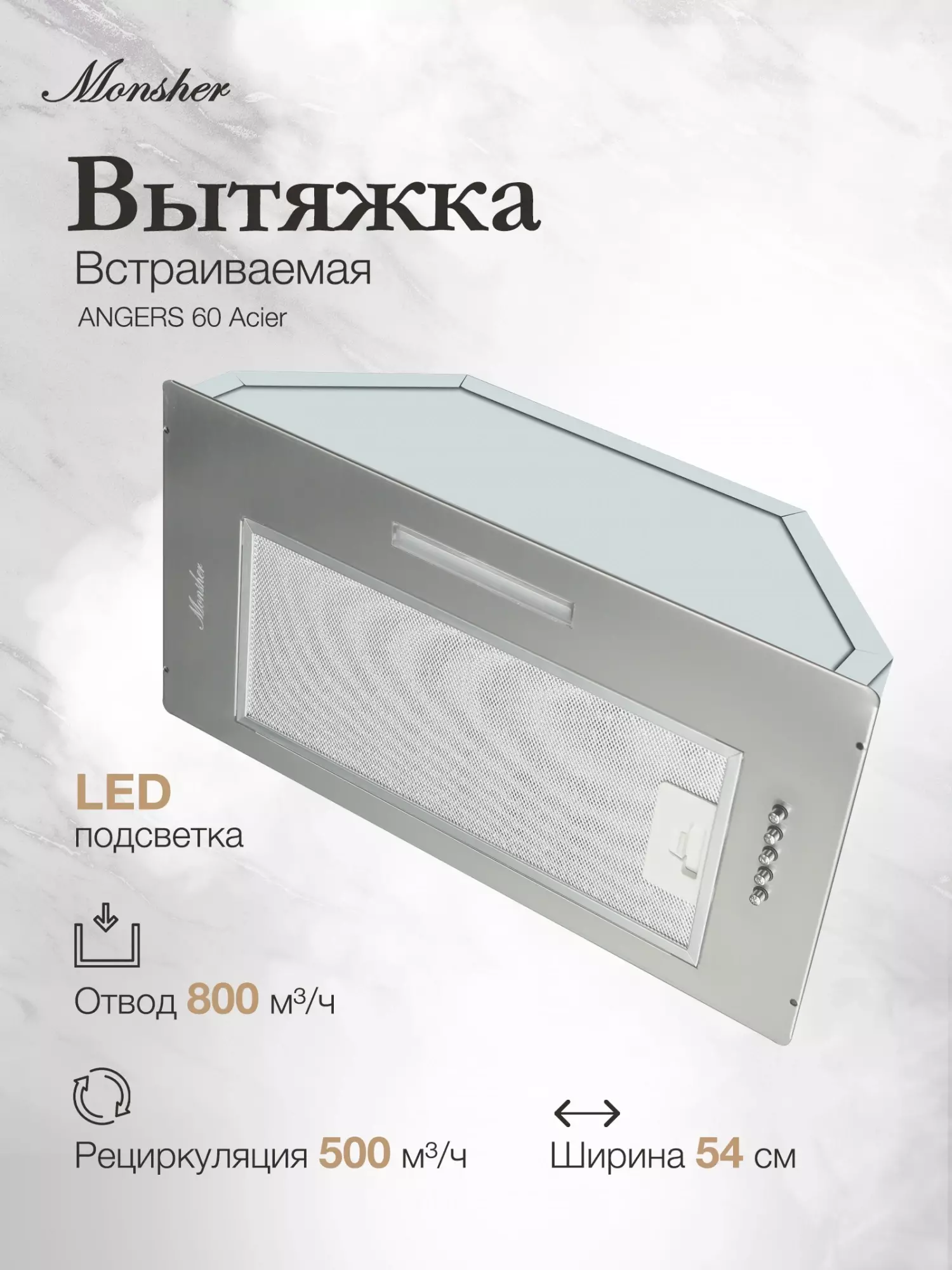 Встраиваемая вытяжка Monsher High-Tech Angers 60 нержавеющая сталь (76351)