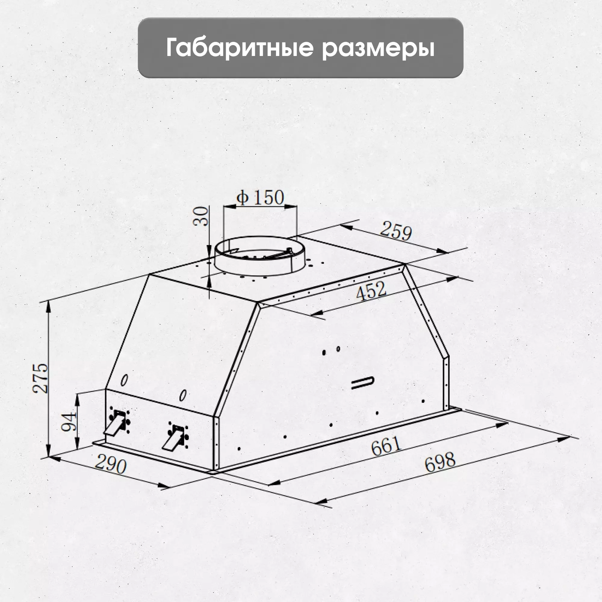 • Диаметр штуцера для отвода воздуха 150 мм