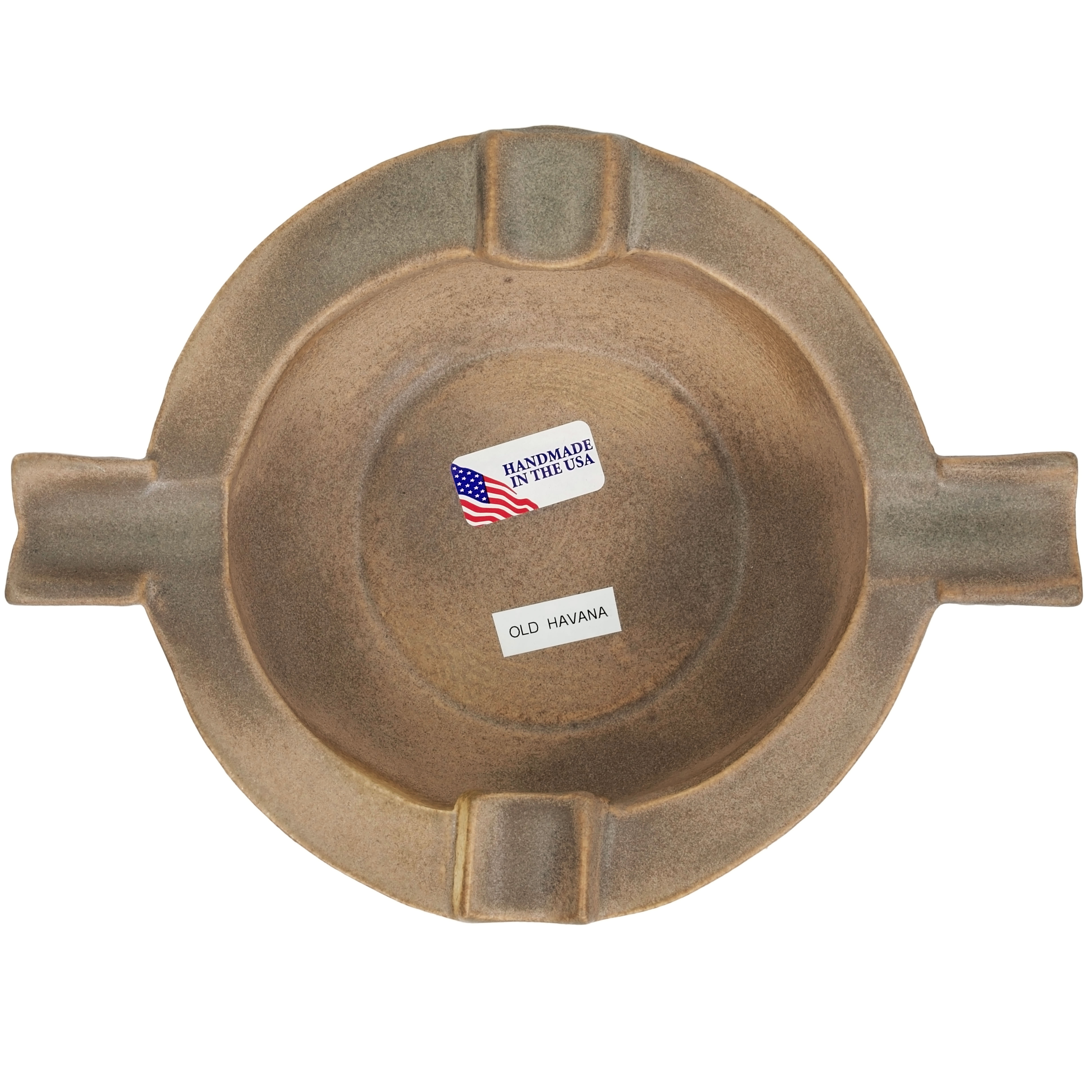 Inspired by the ancient Roman city of Pompeii and the classical styling of pre-revolution Havana, this collectible ashtray has an old, worn distressed look but it is all new. Hand crafted and hand painted, it features four ample cigar rests. Made of easy-to-clean ceramic. Handmade in the USA. Dimensions: L 10.5 in x W 8 in x H 2.5 in (26.67 cm x 20.32 cm x 6.35 cm)