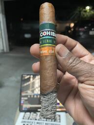 The Cohiba Serie M Toro is a limited-edition premium cigar that is a collaboration between cigar giant General Cigar Co. and famed cigar maker El Titan de Bronze, which is located in the iconic Little Havana neighborhood of Miami, FLA. This artfully crafted cigar features a double binder, a closed foot, and a triple cap that is finished off with a fantail for a very Cubanesque look. Its savory, oily, dark chocolatey Nicaraguan Corojo maduro wrapper covers a dual Nicaraguan binder, and a filler made of the finest Dominican Republic Piloto Cubano leaves that are combined with long-filler leaves from Esteli and Jalapa, which are two of Nicaragua’s top tobacco growing regions. Once lit, this specially selected blend delivers a medium to full-bodied smoking experience, and it exhibits a rich creamy profile with hints of spice and light notes of coffee. The Serie M Toro is the first time that the Cohiba brand has made a cigar in the USA. Only 5,000 boxes of 10 cigars per box of the Cohiba Serie M Toro were made so place your order today before they’re all gone.