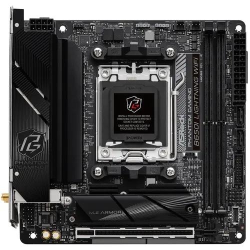 Материнская плата ASRock B650I Lightning WiFi – это оригинальный стиль, компактность и технологичность высокого уровня. Она создана для геймеров и моддеров. Внешне модель привлекает внимание крупными черными радиаторами охлаждения. Следуя концепции «стабильности и надёжности», ASRock не допускает компромиссов ни в чём. Все материнские платы B650 основаны на 8-слойных печатных платах, что позволяет повышать производительность памяти DDR5 до 7200МГц и выше за счёт готовых профилей разгона. Для этого достаточно, чтобы модули памяти поддерживали технологии AMD EXPO или Intel XMP, и оверклокинг сразу станет доступным, простым и приятным занятием.