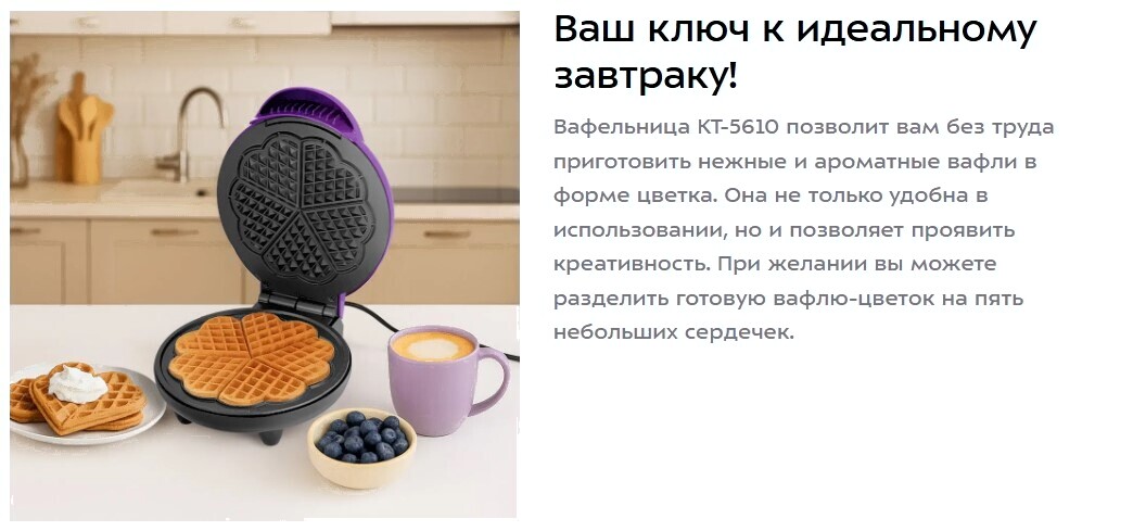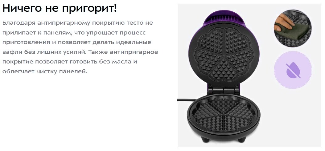 • Вместимость вафли в форме цветка 1 шт., вафли в форме сердца 5 шт.