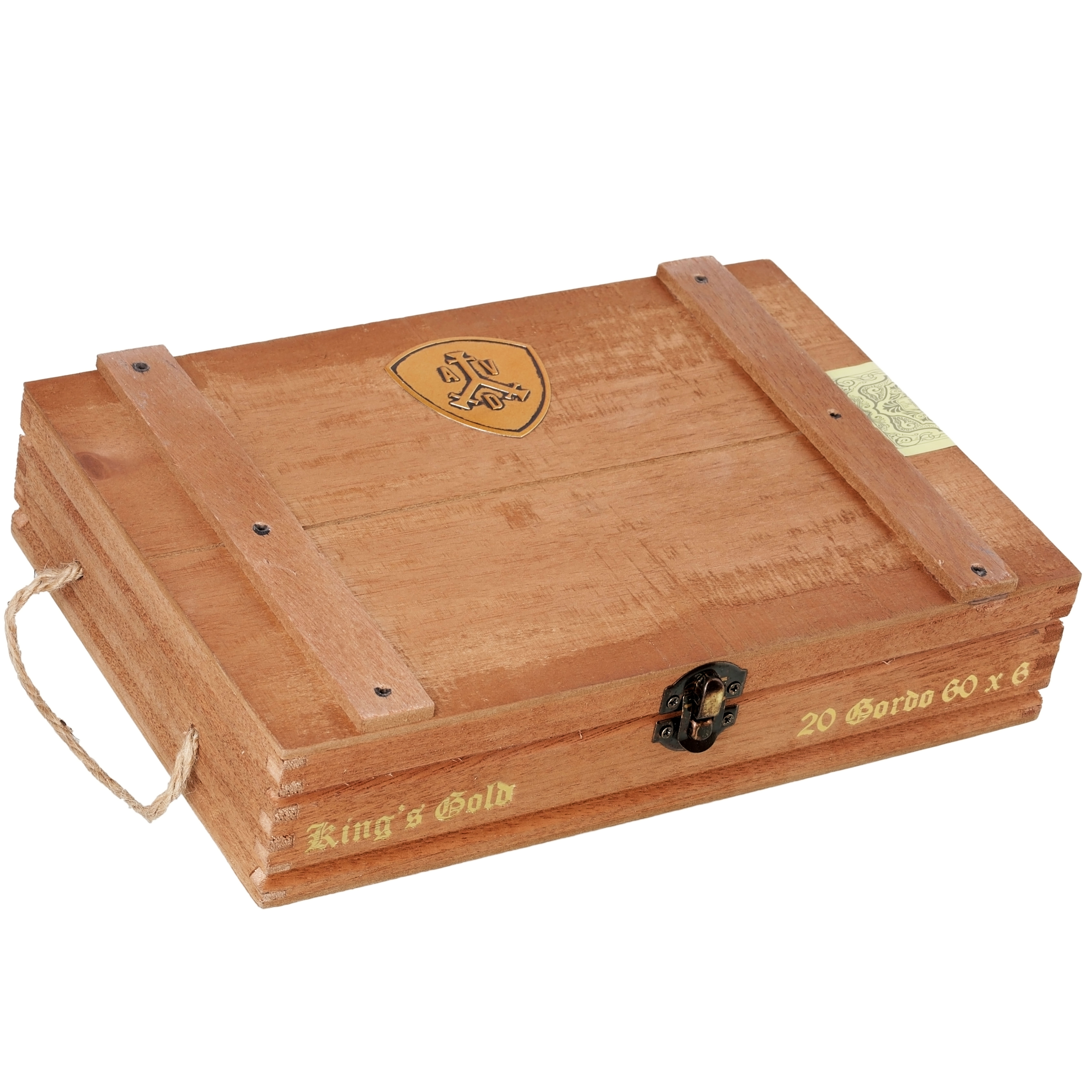 A medium-bodied cigar with woody, nutty, earthy, chocolatey, and coffee notes. Its USA Connecticut Broadleaf maduro wrapper covers a Mexican San Andres binder and Nicaraguan, USA, and Dominican filler leaves. Prior to rolling, the tobacco was aged for five years. Once rolled, the cigars are aged for four months to allow the flavors to marry. The Royal Return King’s Gold is the fourth release of the ADVentura brand, which follows the fictional story of two 15th century explorers who set out on a quest to discover “the unknown pleasures of the world.” The ADVentura The Royal Return King's Gold Gordo is a hefty cigar that delivers at least 90 minutes of smoking enjoyment, so set some time aside and dive in. The cigars are handmade in the Dominican Republic at the famed William Ventura cigar factory.